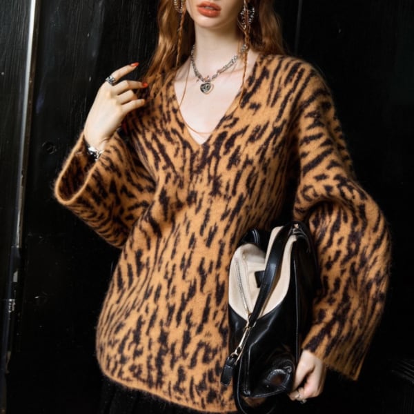 アニマルデザイン Vネック ニットプルオーバー 239121
