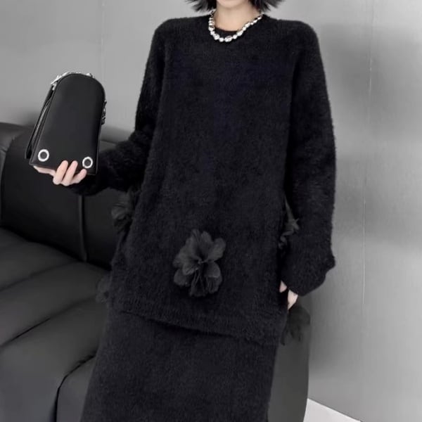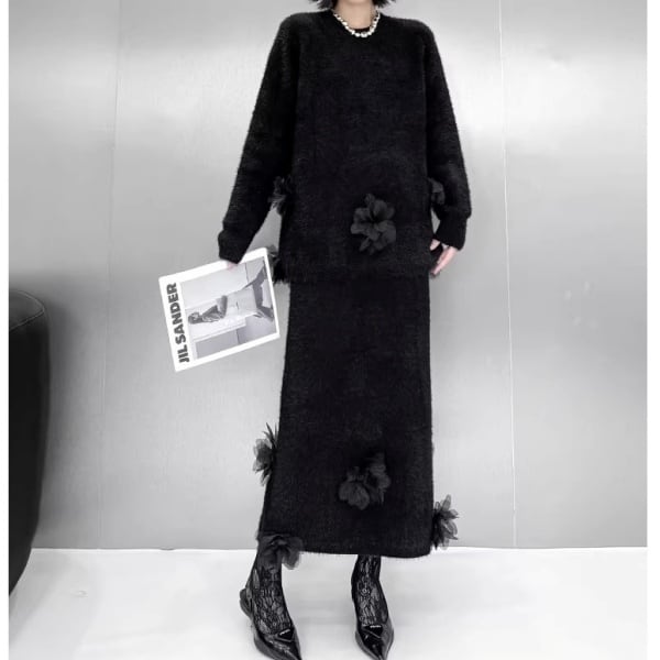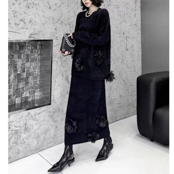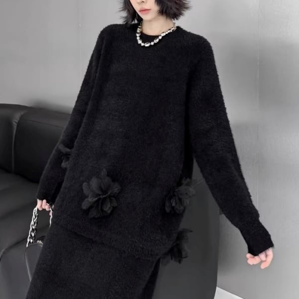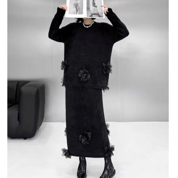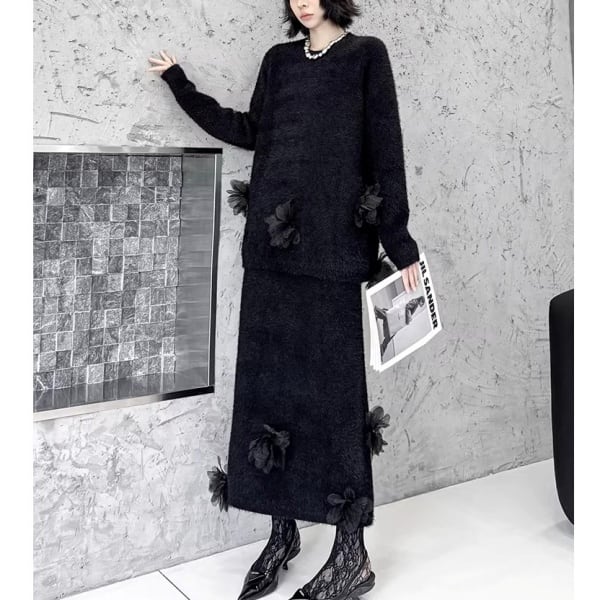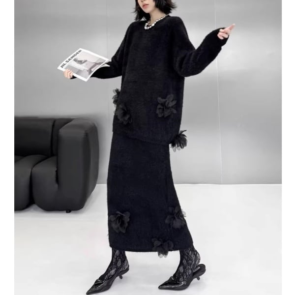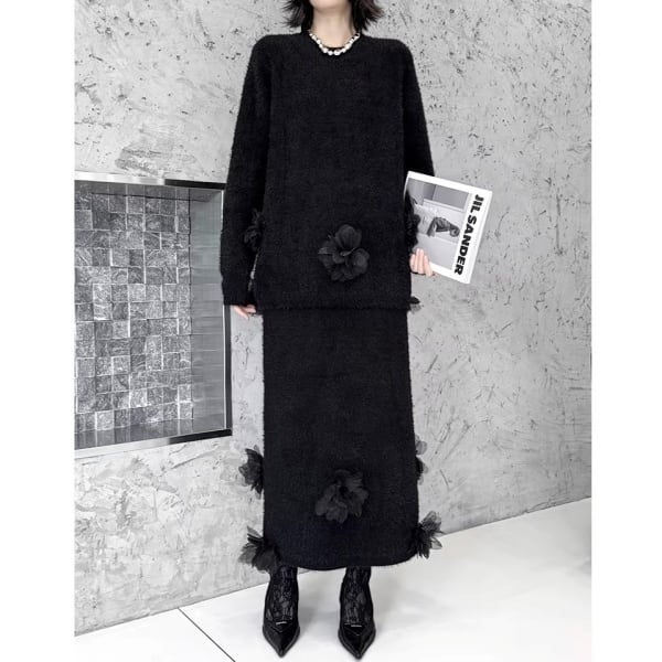 【Setup】3Dフェザーフラワー シャギーニット&スカート 239257