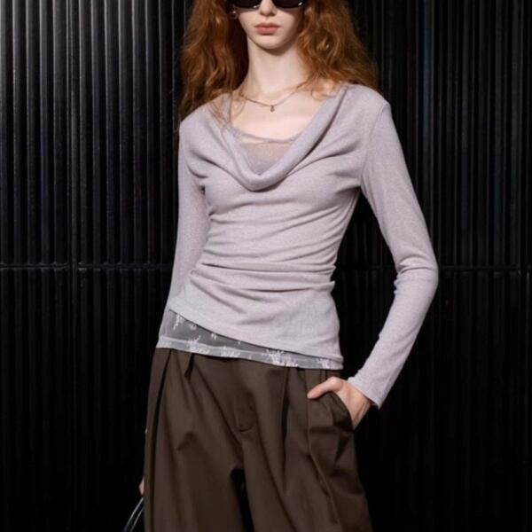 ドレープネック レイヤード シアー トップス 239254