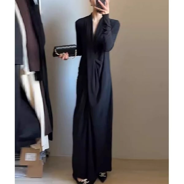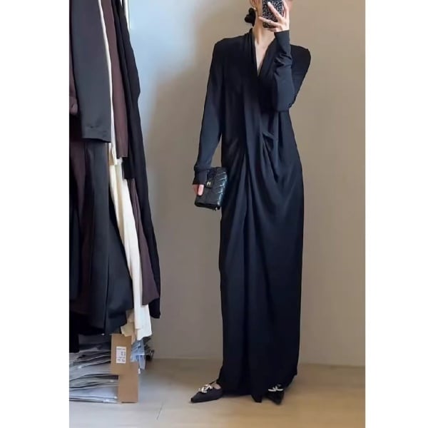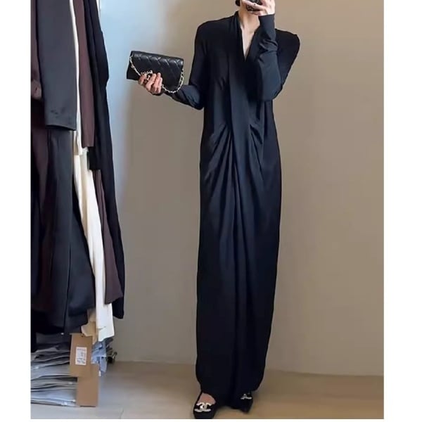 ディープVネック フルレングス ドレープワンピース 239273