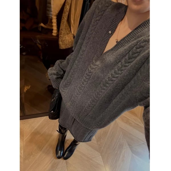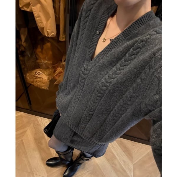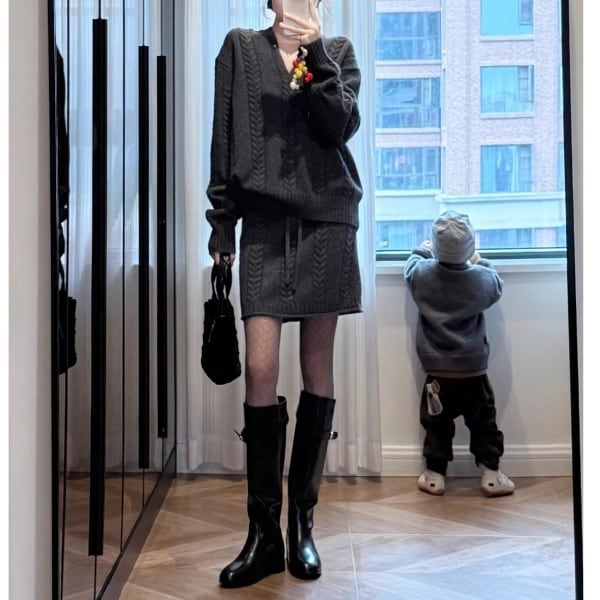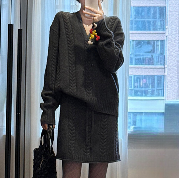 【Setup】ケーブル Vネック ニット & ミニスカート 239288