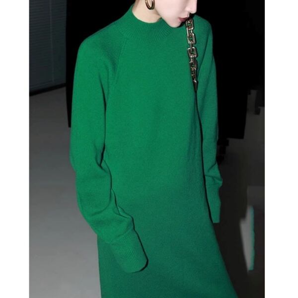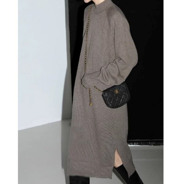 サイドスリット ハイネックニットロングワンピース 239290