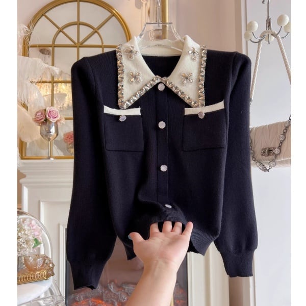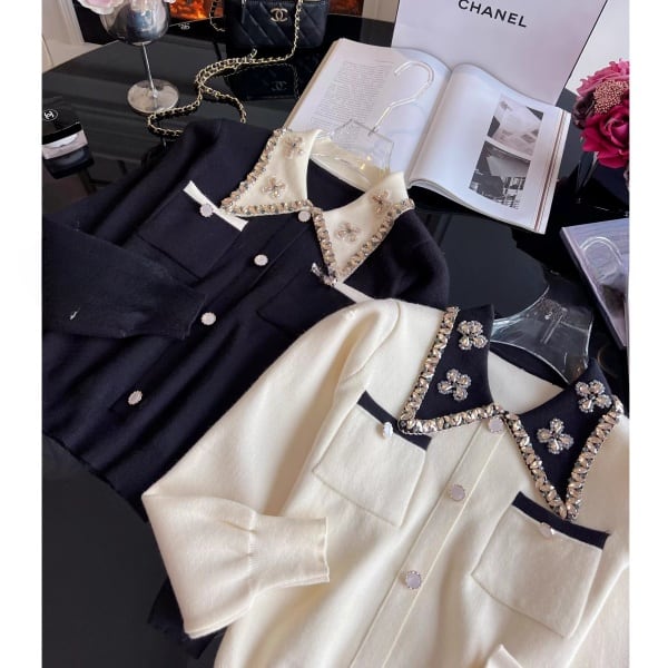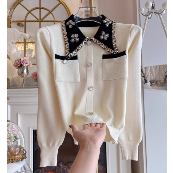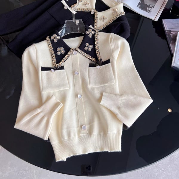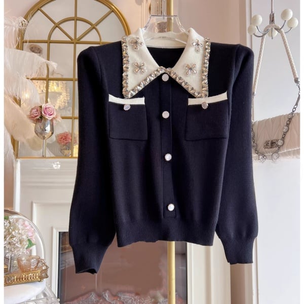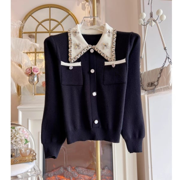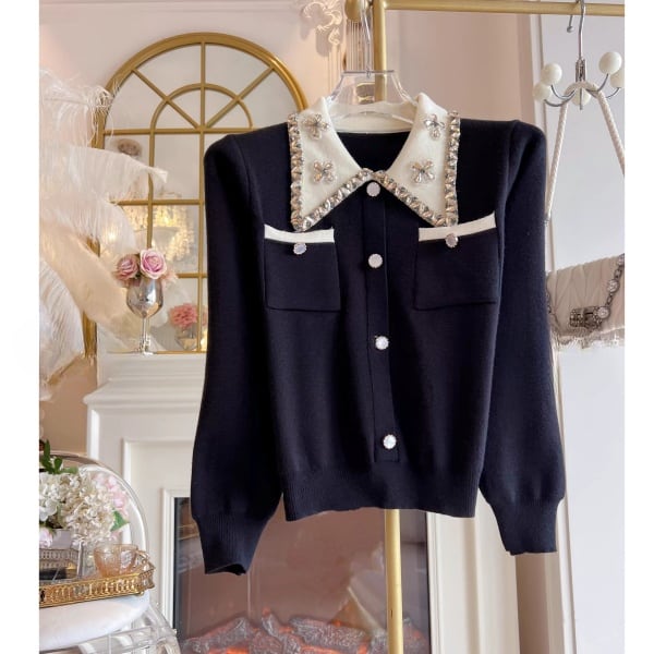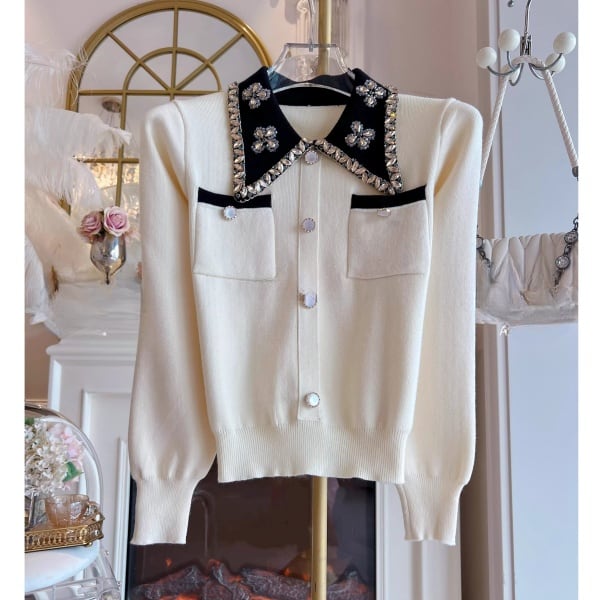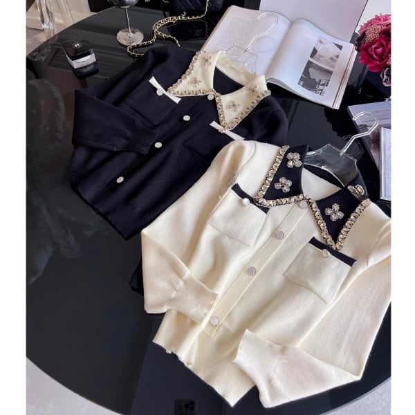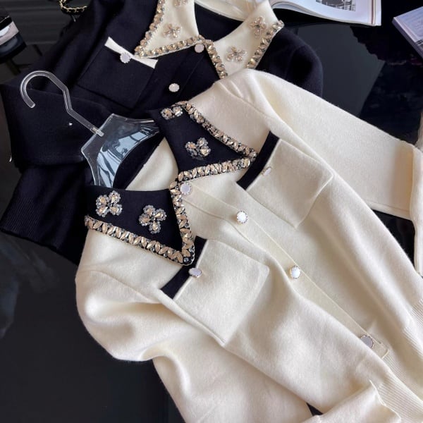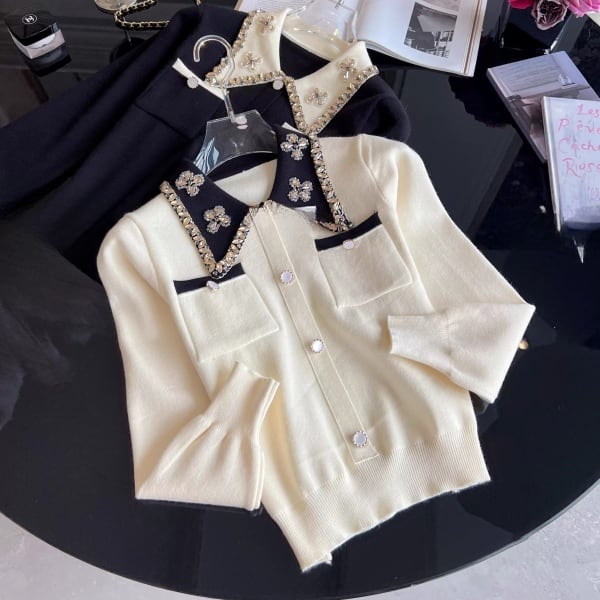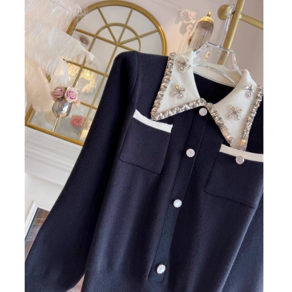 ビジュー バイカラー ニットカーディガン 239179