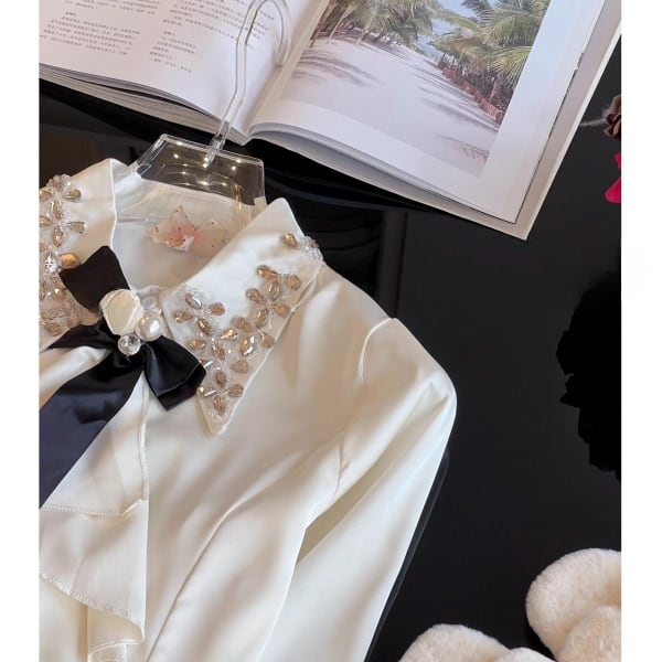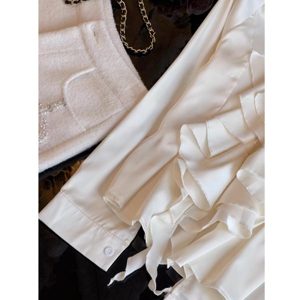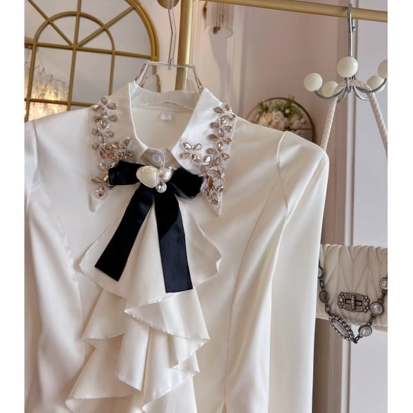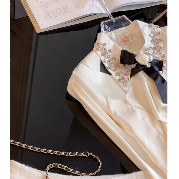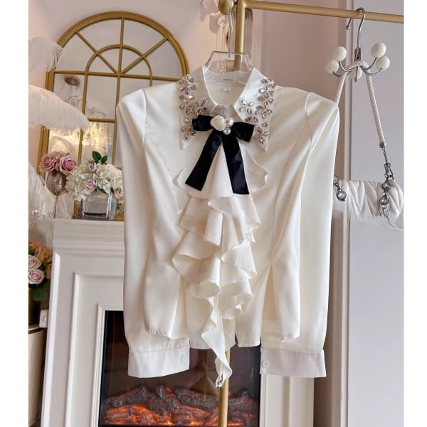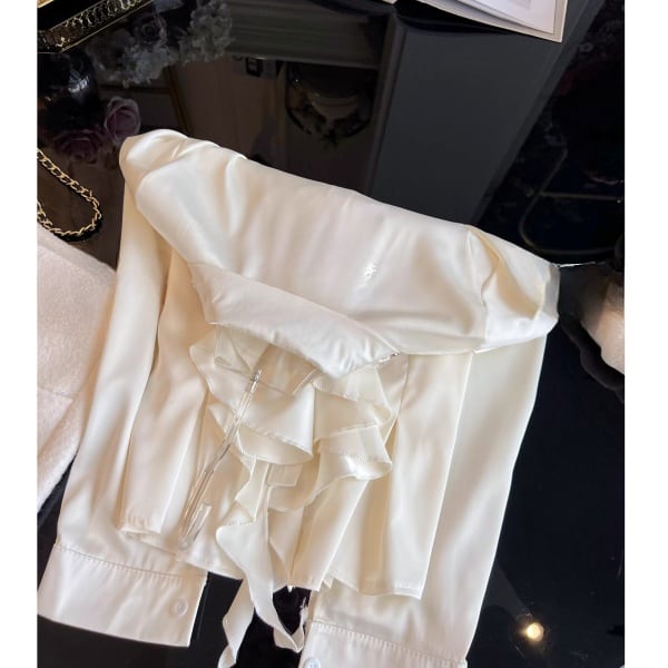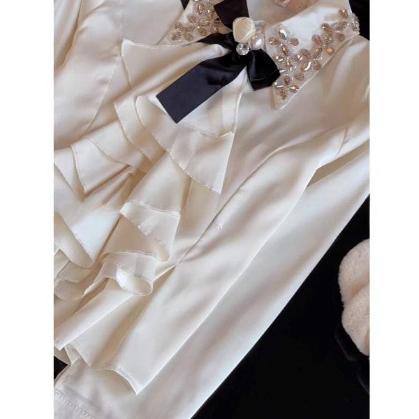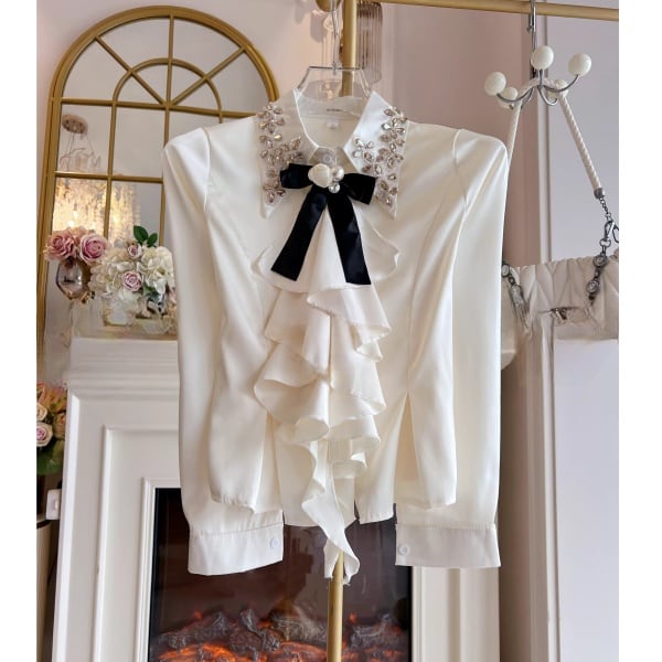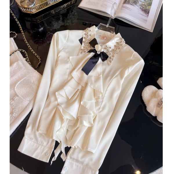 ラッフルフリル ビジュー サテンシャツ 239180