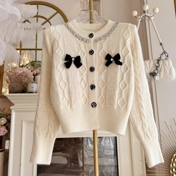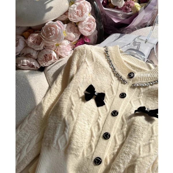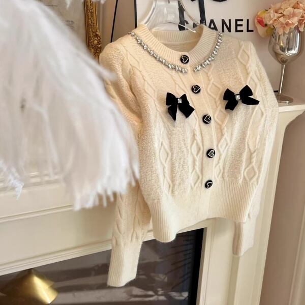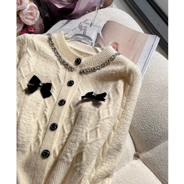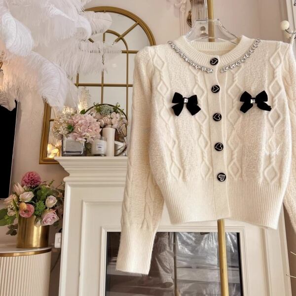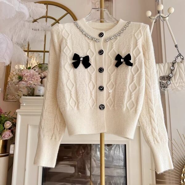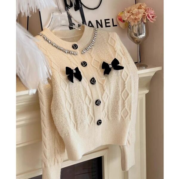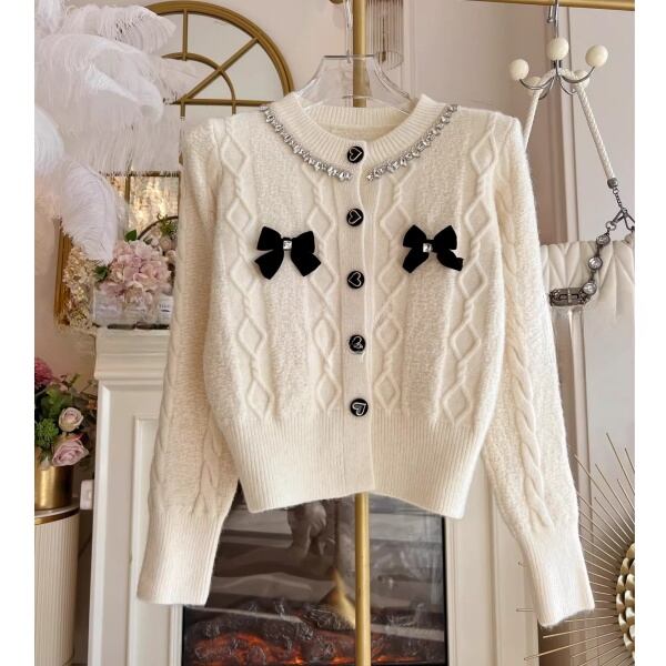 リボンモチーフ ケーブル編み ビジュー カーディガン 239166