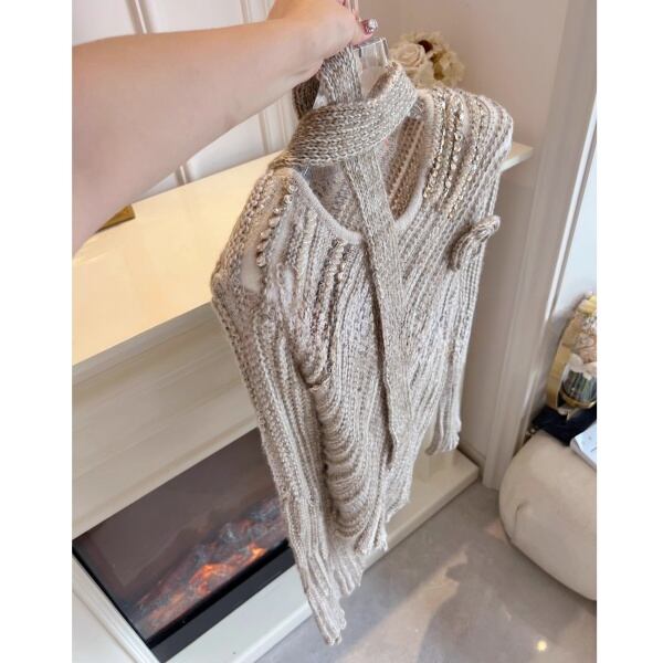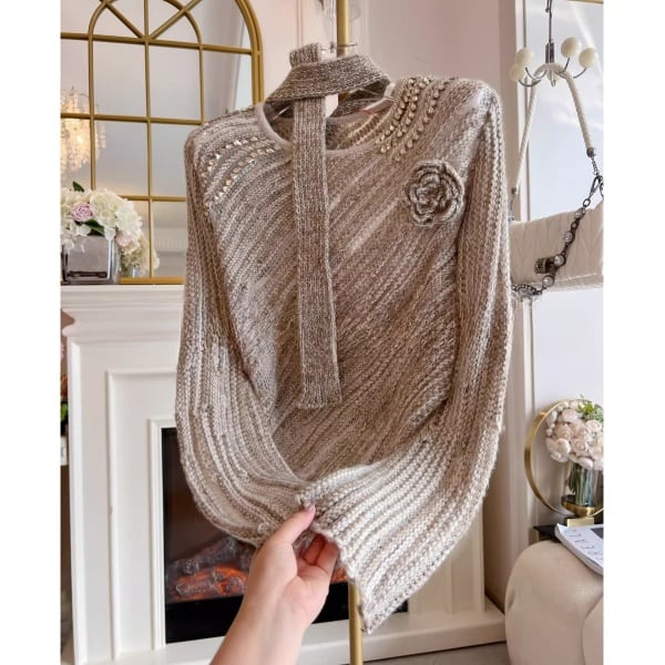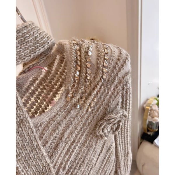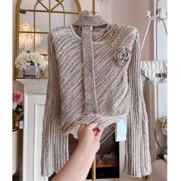 ストール フラワーコサージュ ビジューデコレーションニット 239171