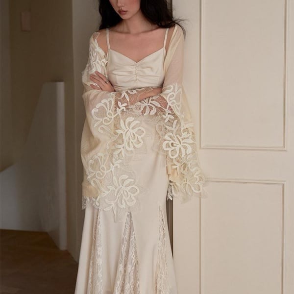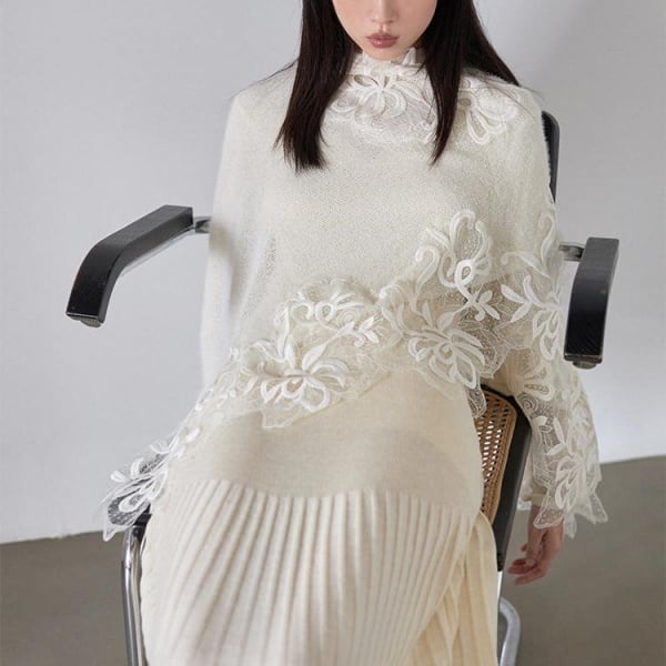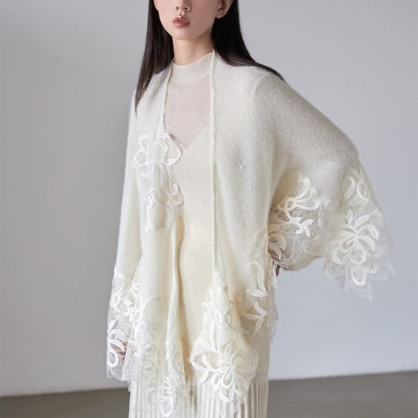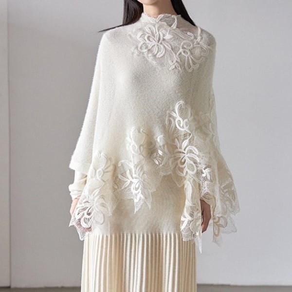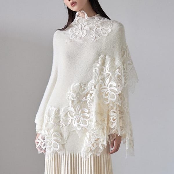 フラワーレース ニット ポンチョ 239043