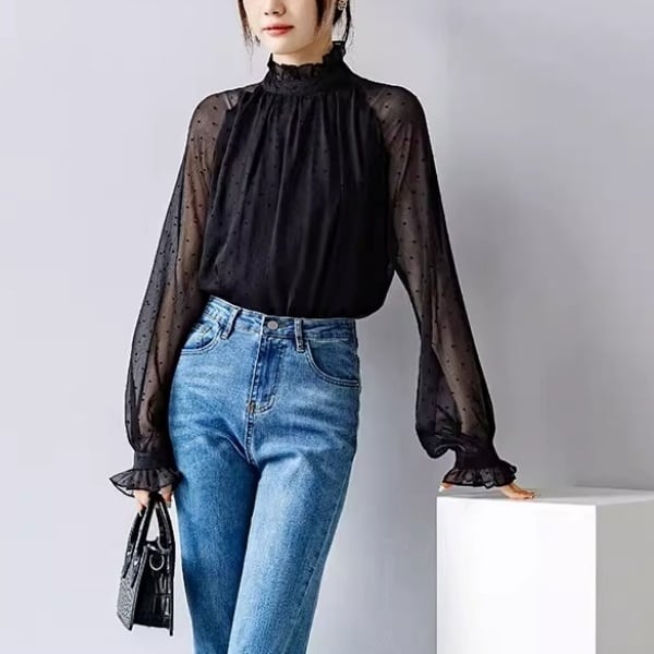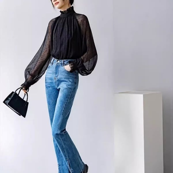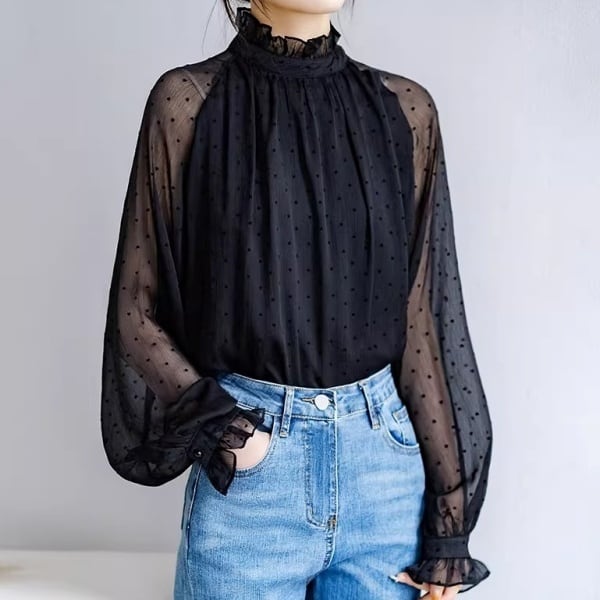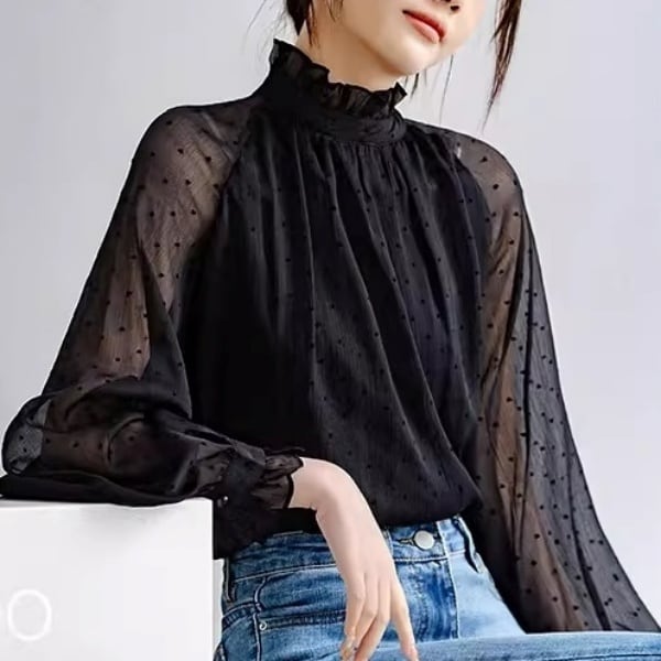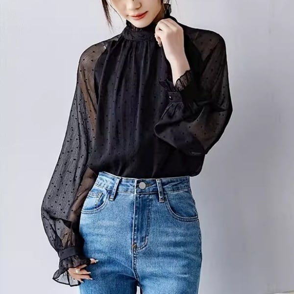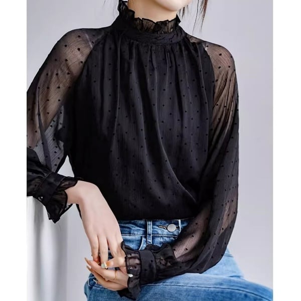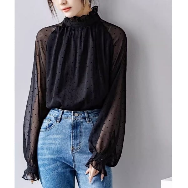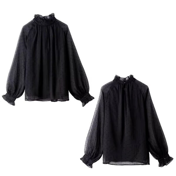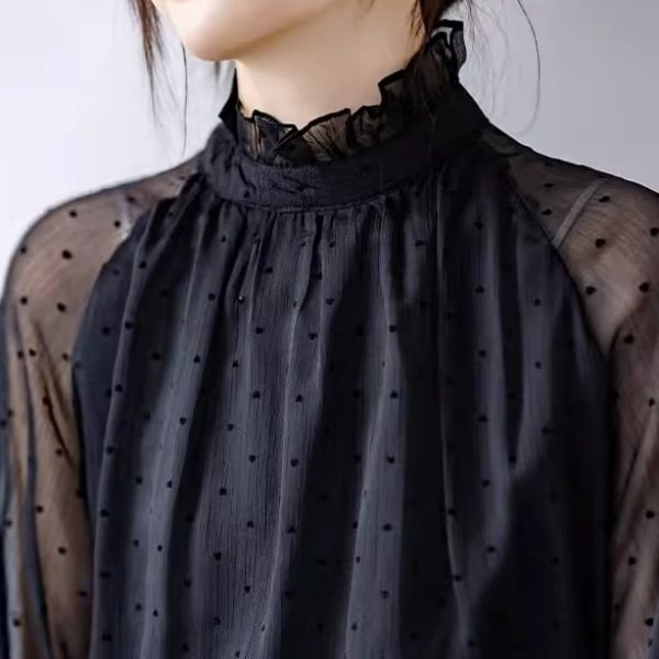 ドットシアー ラッフルスタンドカラー ブラウス 224269