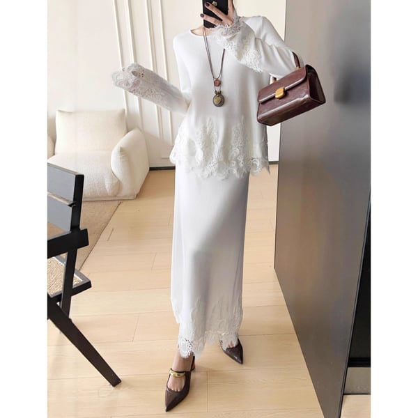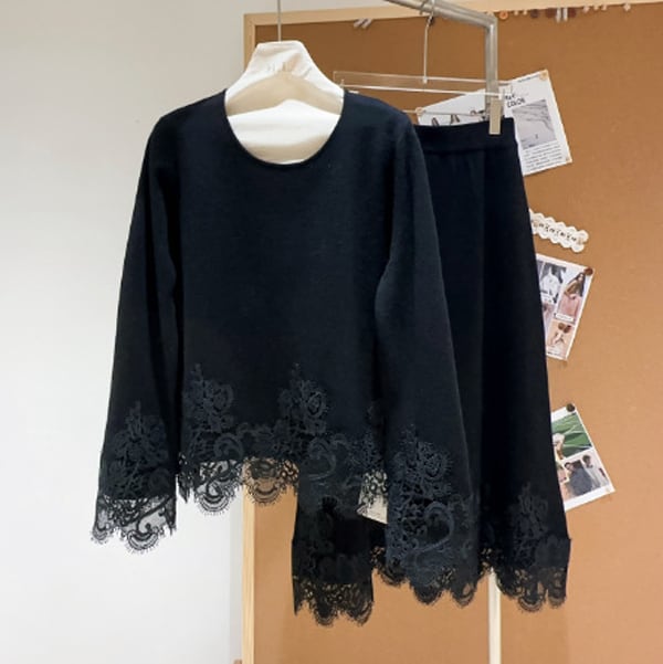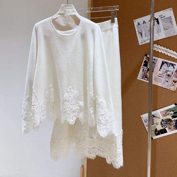 【set up】フラワーレース ニット プルオーバー&レース ニット スカート 238807