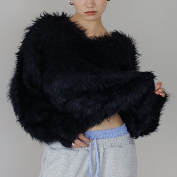 【ブラック・アイボリー即納】シャギー ニットプルオーバー 239422