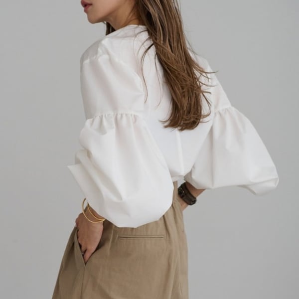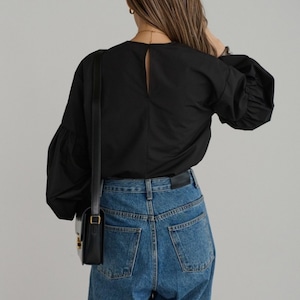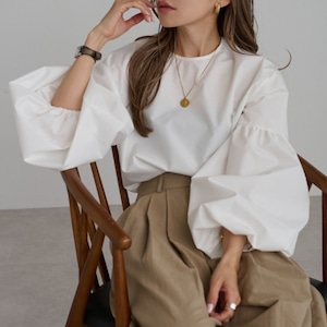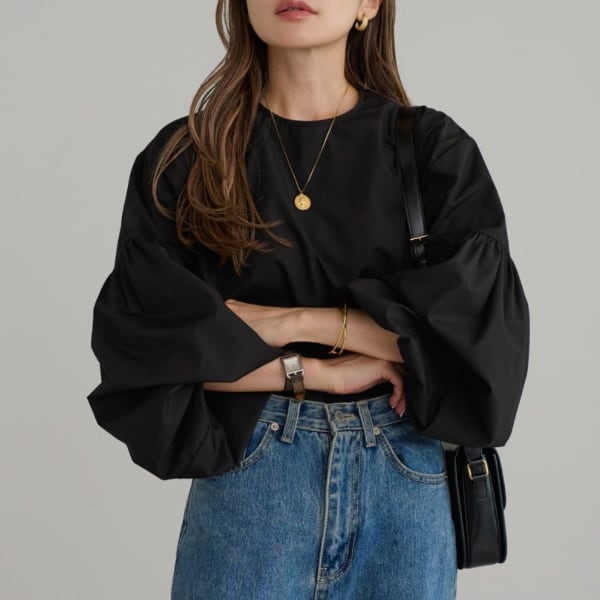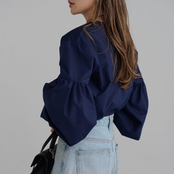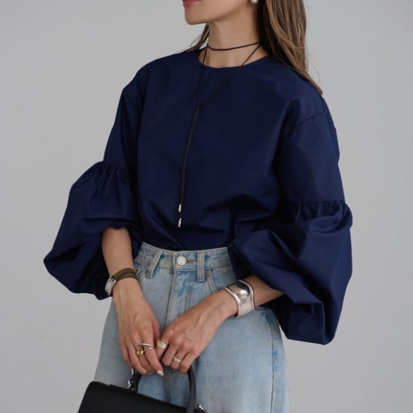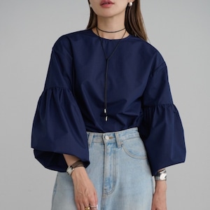 【ネイビー即納】ボリュームスリーブ プルオーバーブラウス 239428