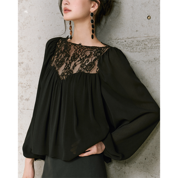 シアー レース パフスリーブ シフォン ブラウス 239455