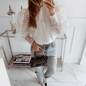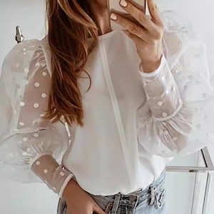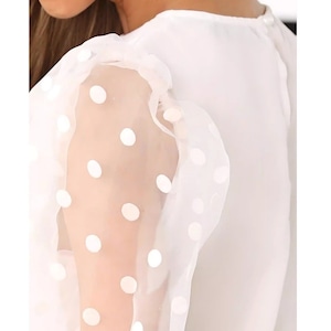 ドット プリント シアー パフスリーブ ドッキング ブラウス 239537