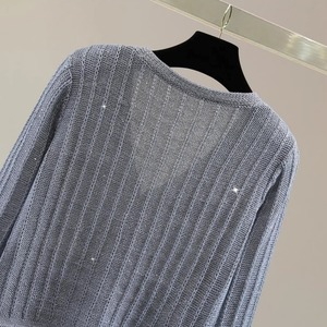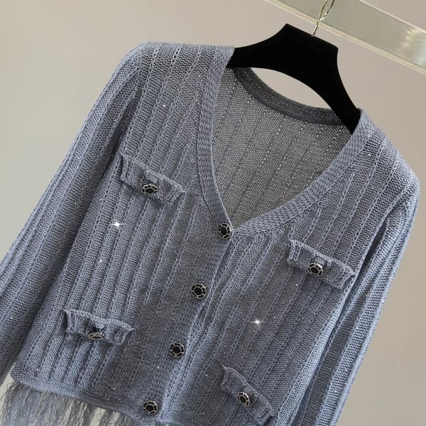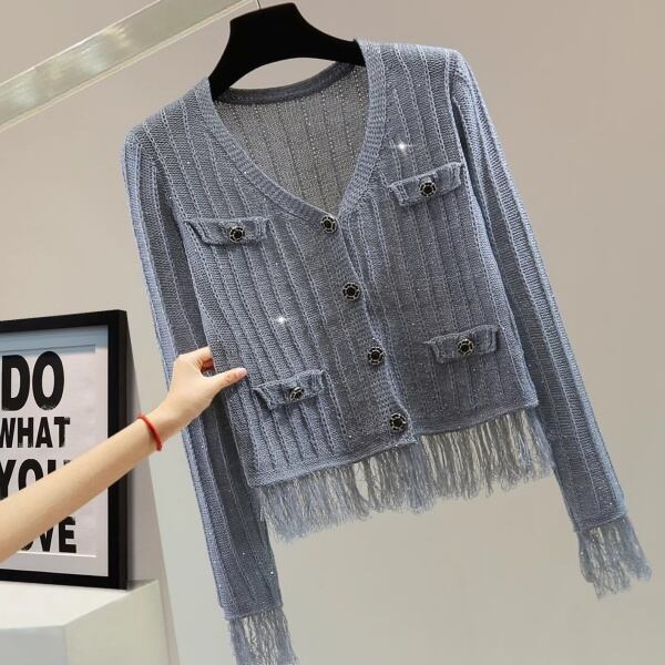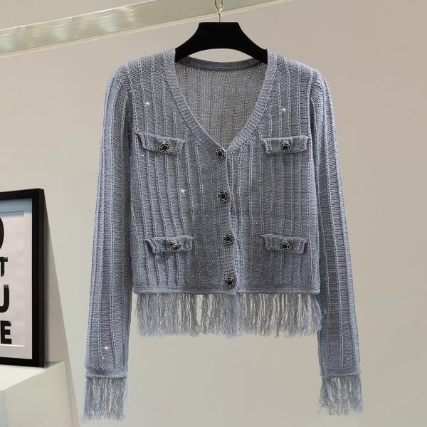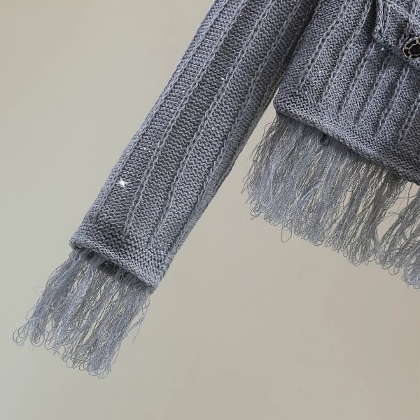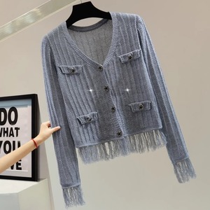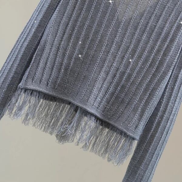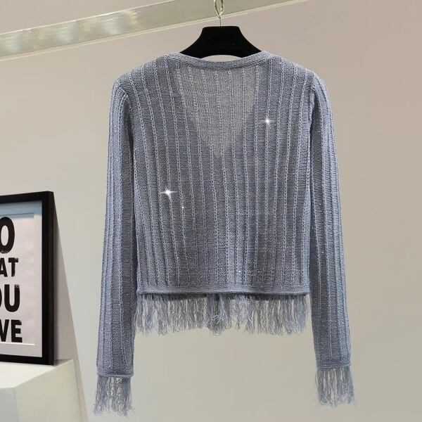 シャイニー ラメ リブ ニット フリンジ ヘム カーディガン 239473