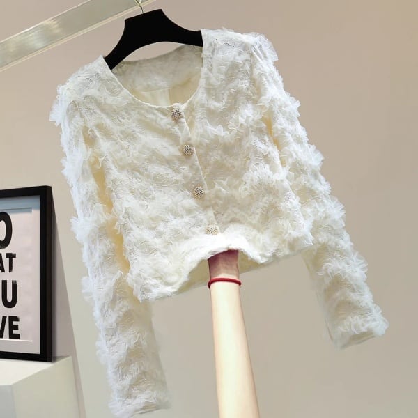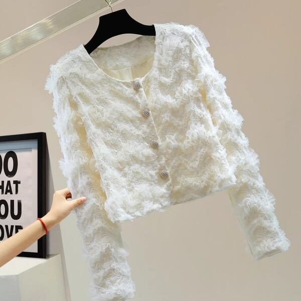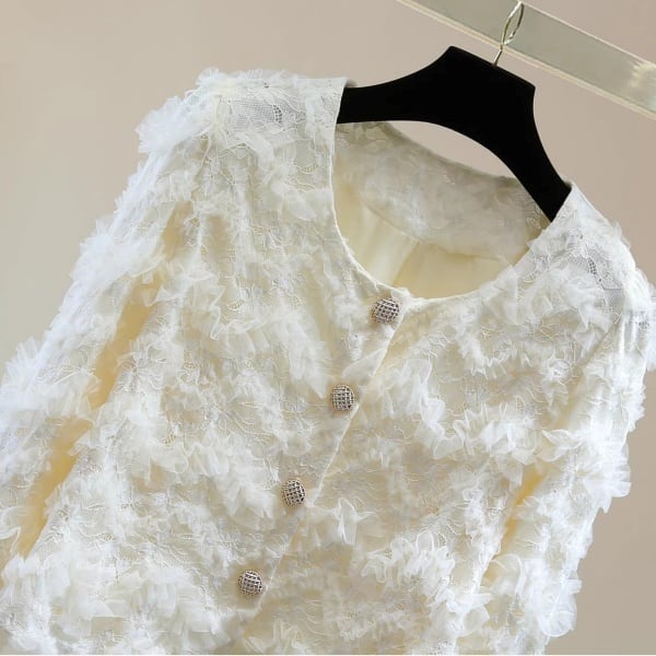 3D チュール フリル レイヤード ビジューボタン ジャケット 239474