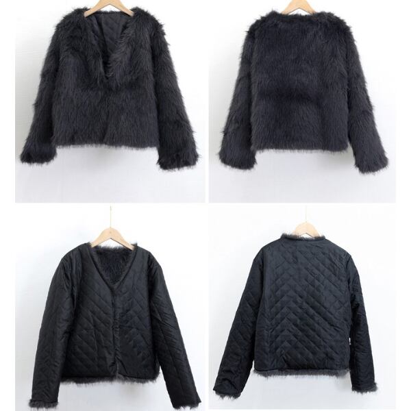 【即納】ノーカラー フェイクファー ジャケット 239577