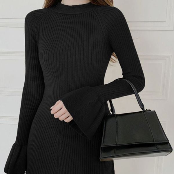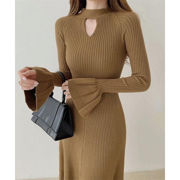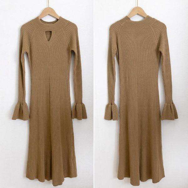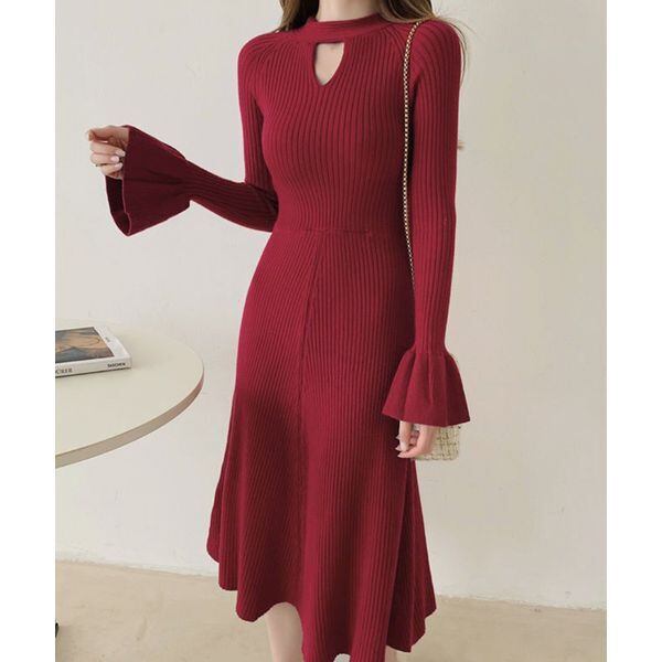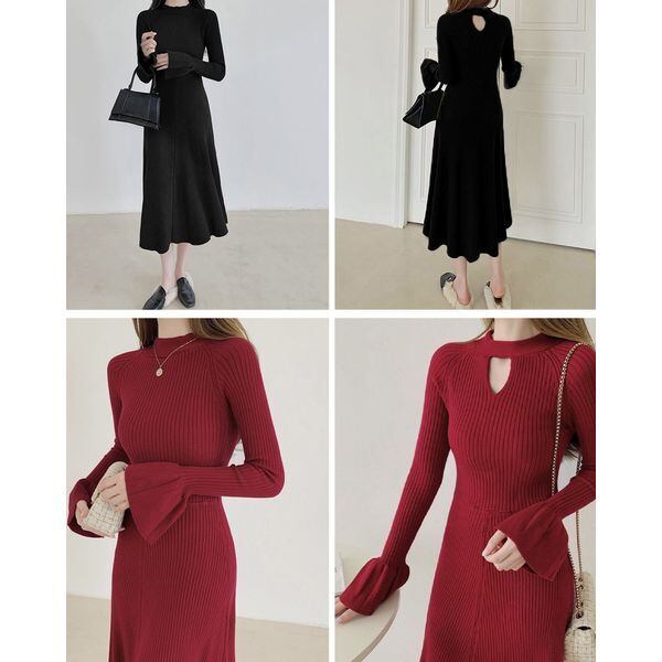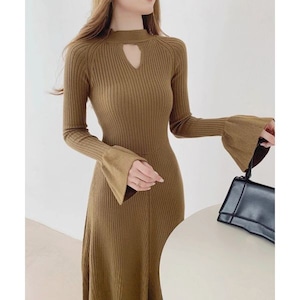 【即納】キーホールネック リブニット ワンピース 239564