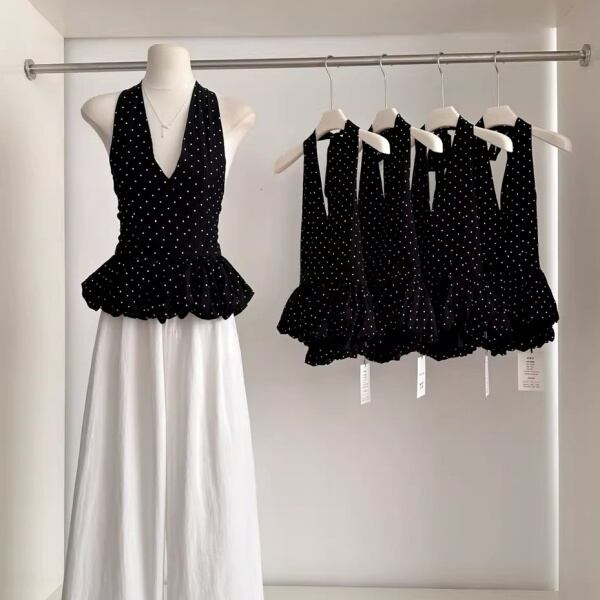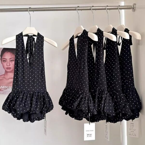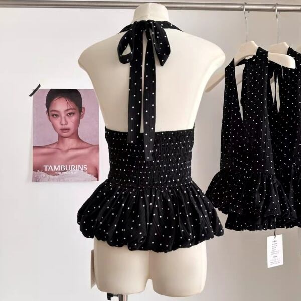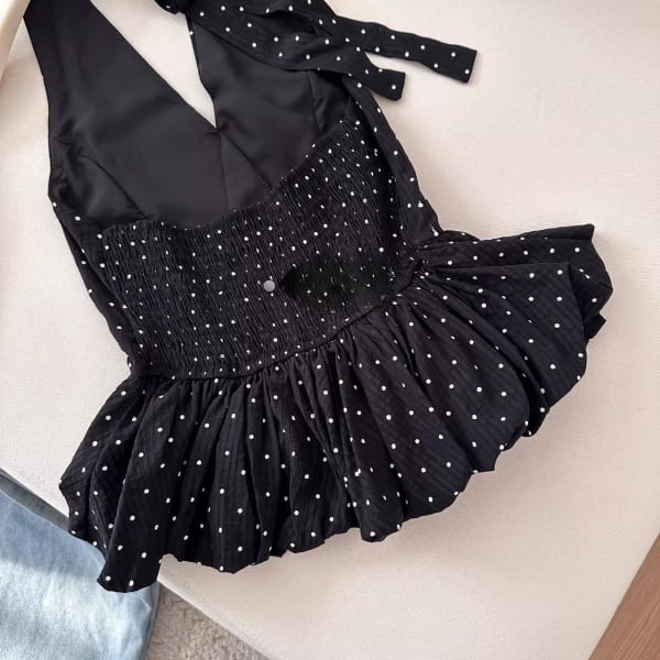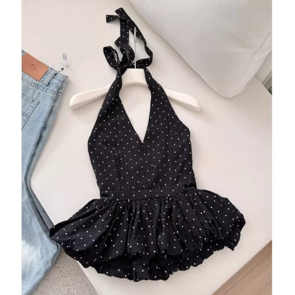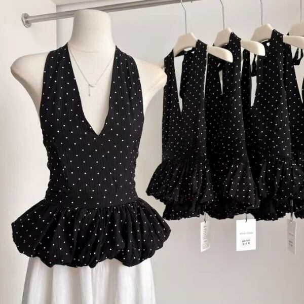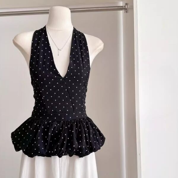 ドット ホルターネック ペプラム 239748