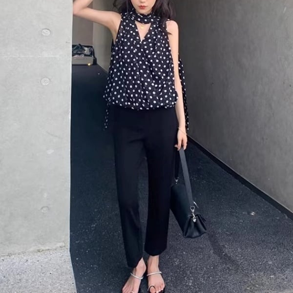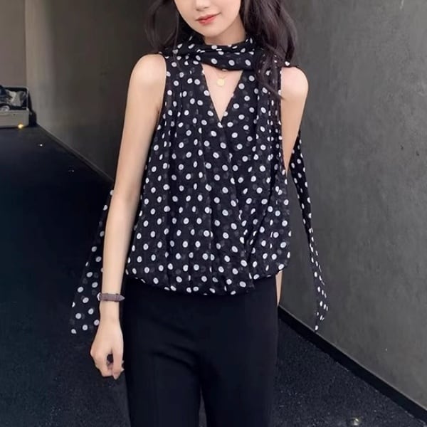 ドット ノースリーブ ブラウス 239844