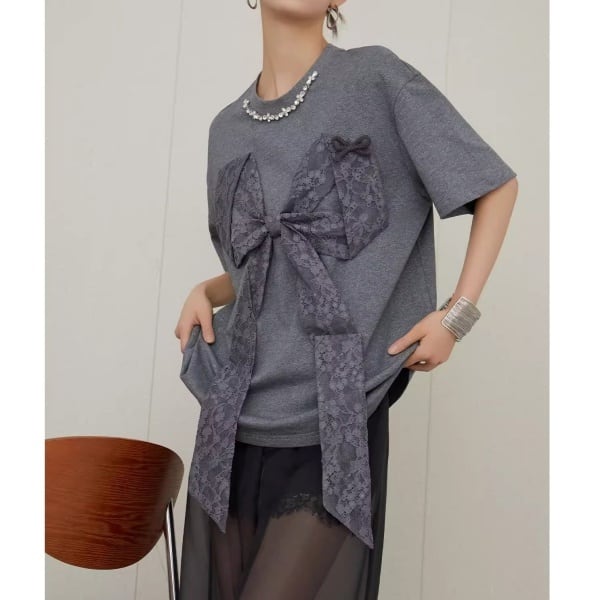 レース ビッグリボン ビジュー カットソー 239834