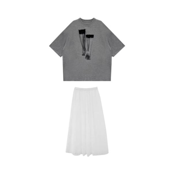 プルオーバー カットソー/チュール スカート 240094