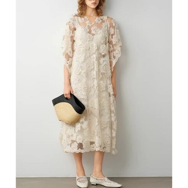 キャミソール&レース フラワー ワンピース 239955