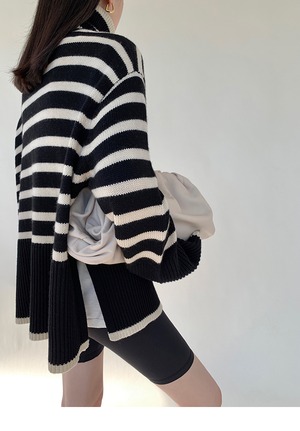 タートルネック ボーダーニット 213700