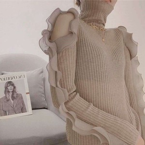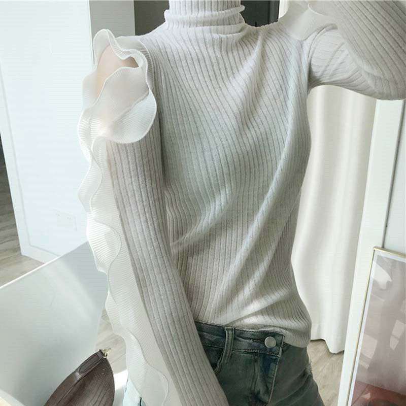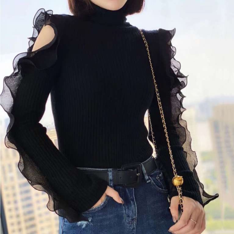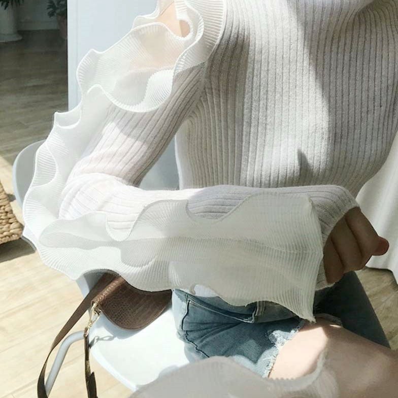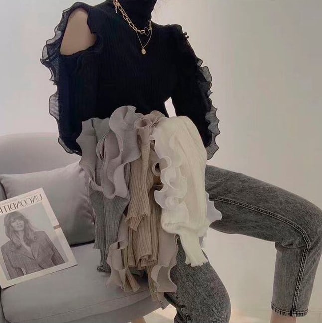 大人可愛いにかかせない定番アイテムのカットオフショルダーのトップス。肩のチラ見せと袖全体についた大きめのフリルが、女性心をくすぐるデザイン。カラーはホワイト・ベージュ・グレー・ブラックの合わせやすい4色展開。着丈は身体にフィットするサイズ感なので、ボトムスにはボリュームのあるワイドパンツや、スキニーなど細みのものを選んで。合わせるアイテムで可愛いだけでなく綺麗めにもまとまるので、コーデの幅を広げてくれる1枚です。