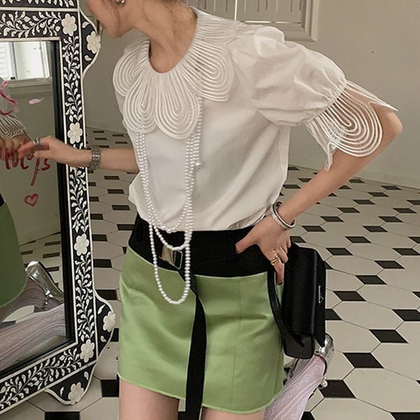 デザインカラー パフスリーブ プルオーバー 220641