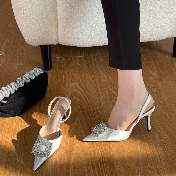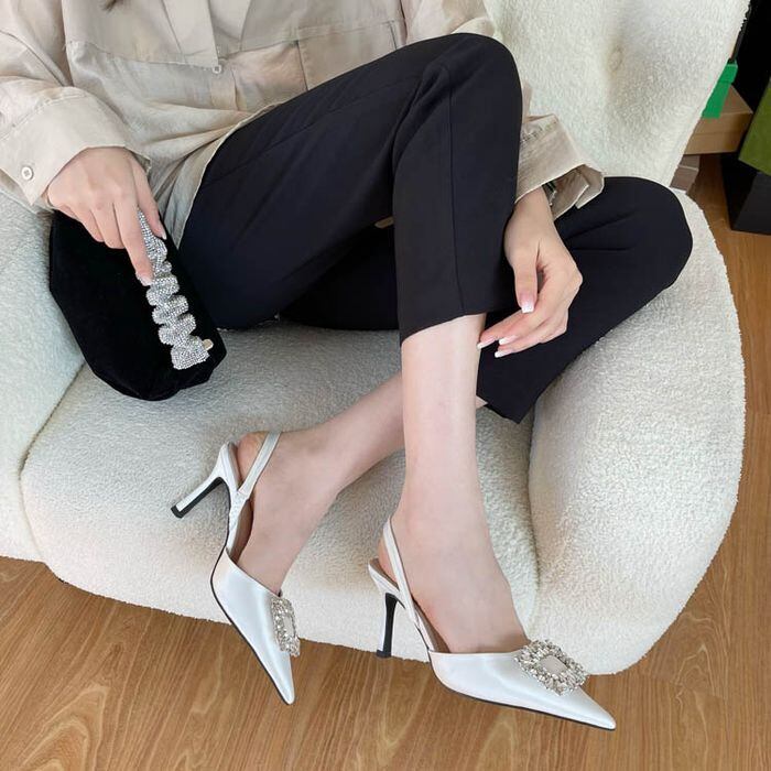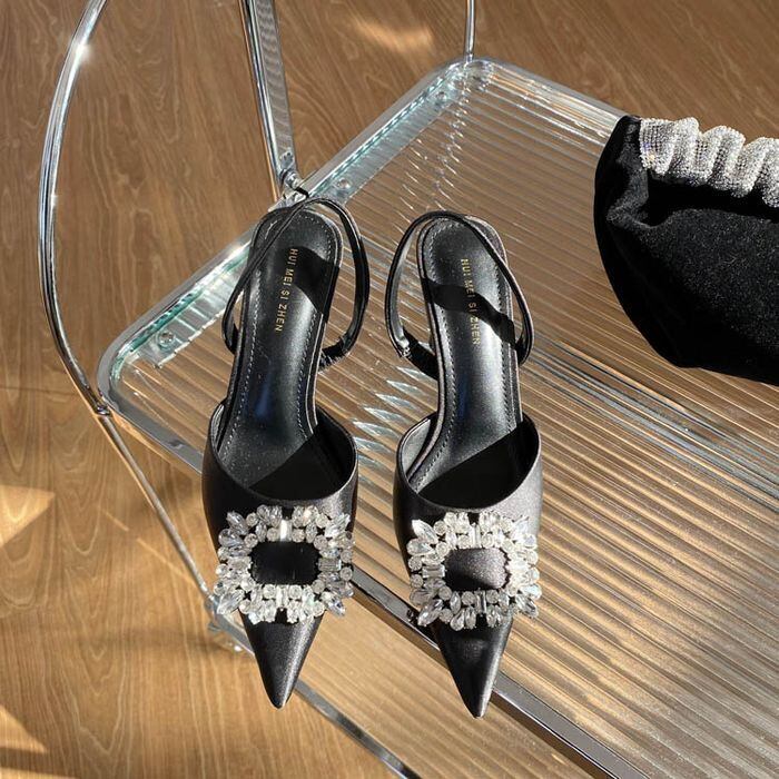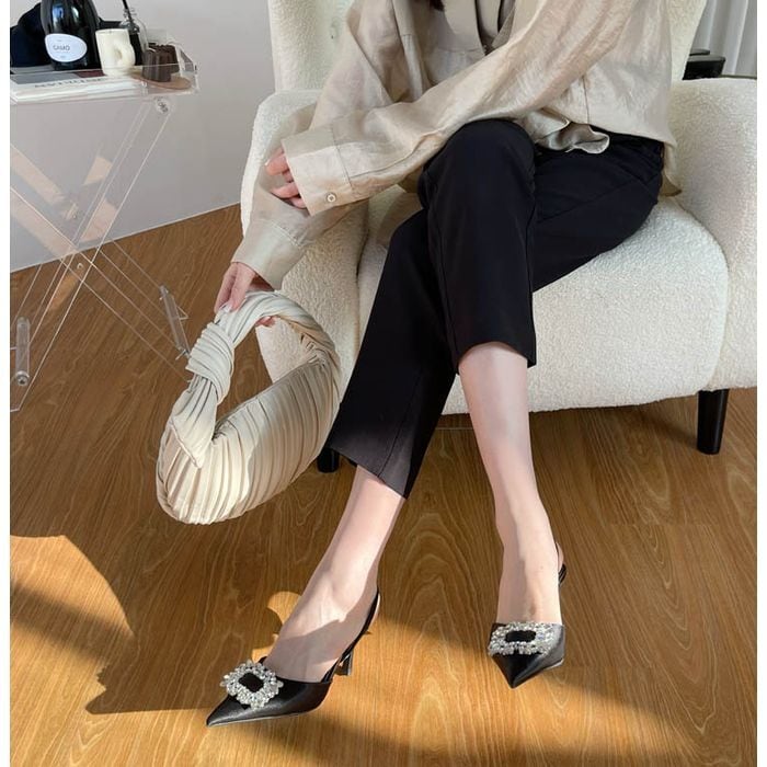 ビジューバックル ポインテッドトゥ パンプス 220788