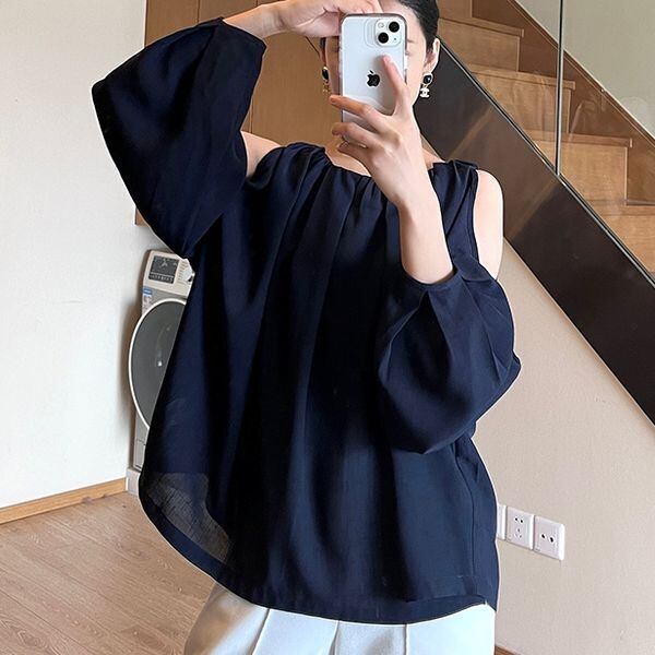 ネイビー オープンショルダー プルオーバー 221210