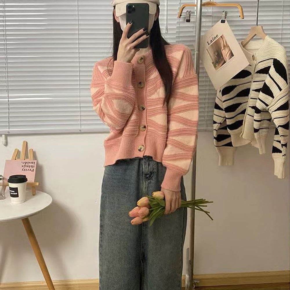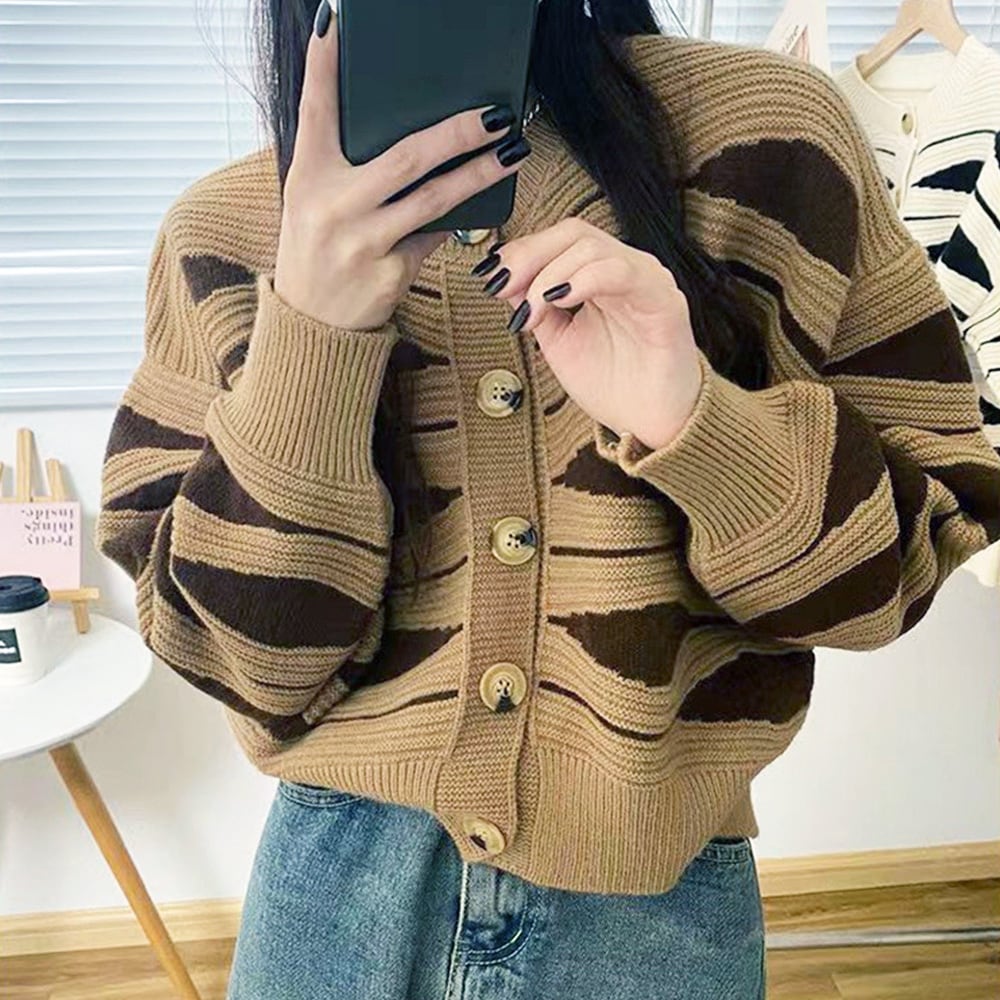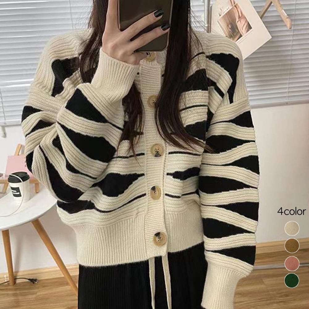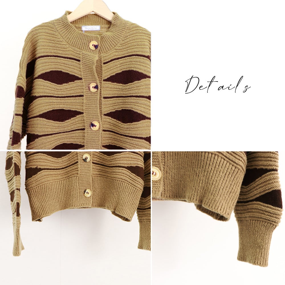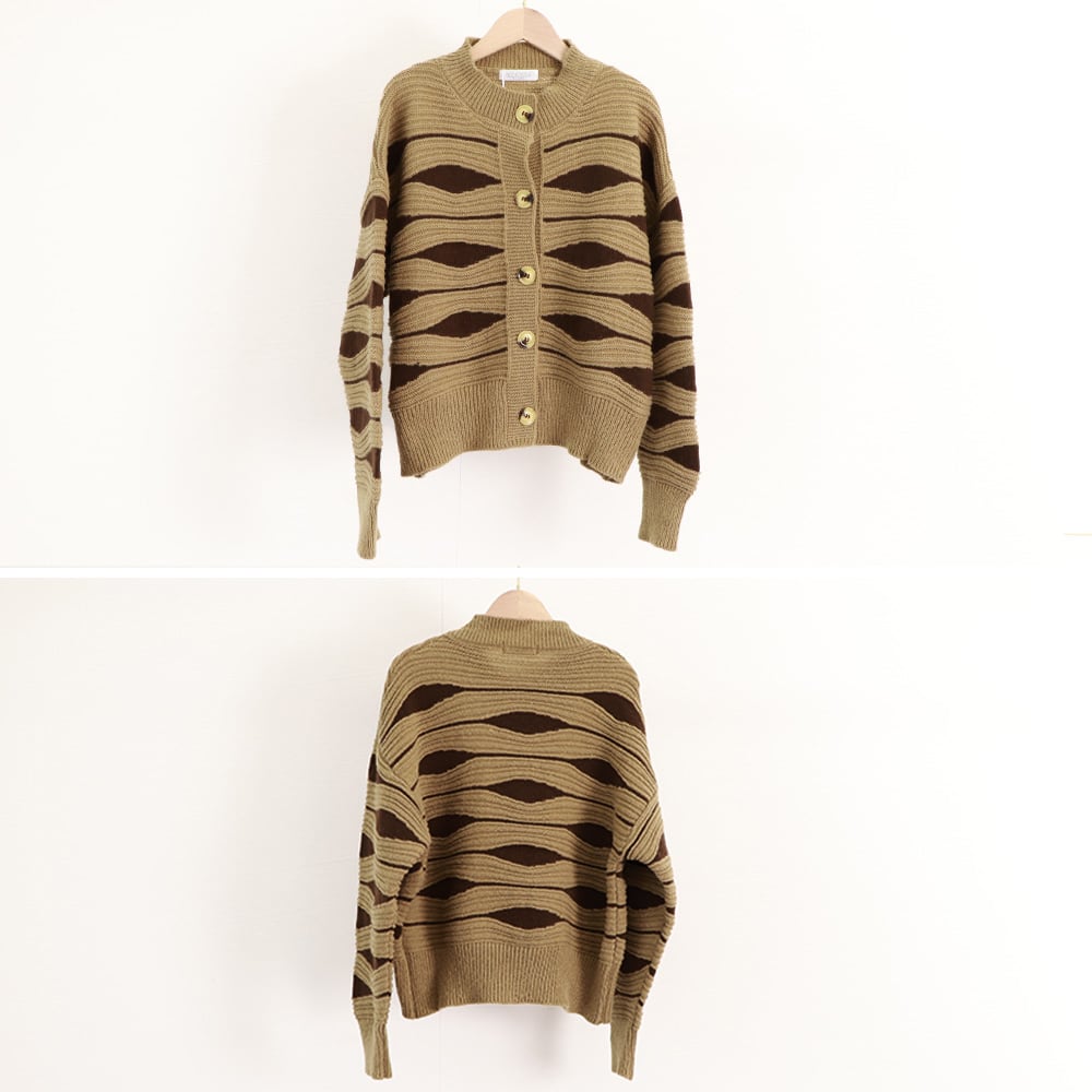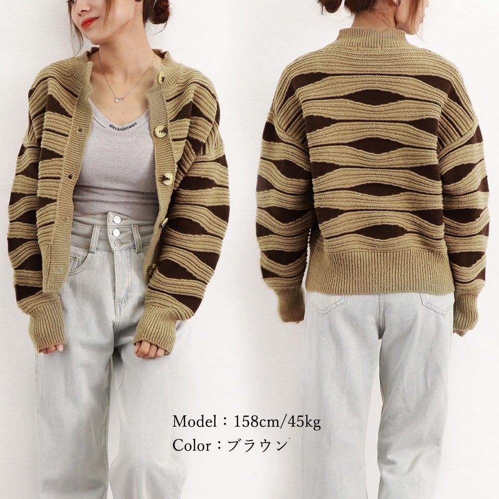 【即納】バイカラー ニット カーディガン 223697