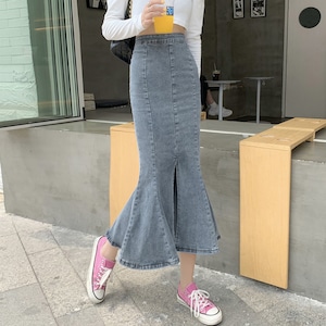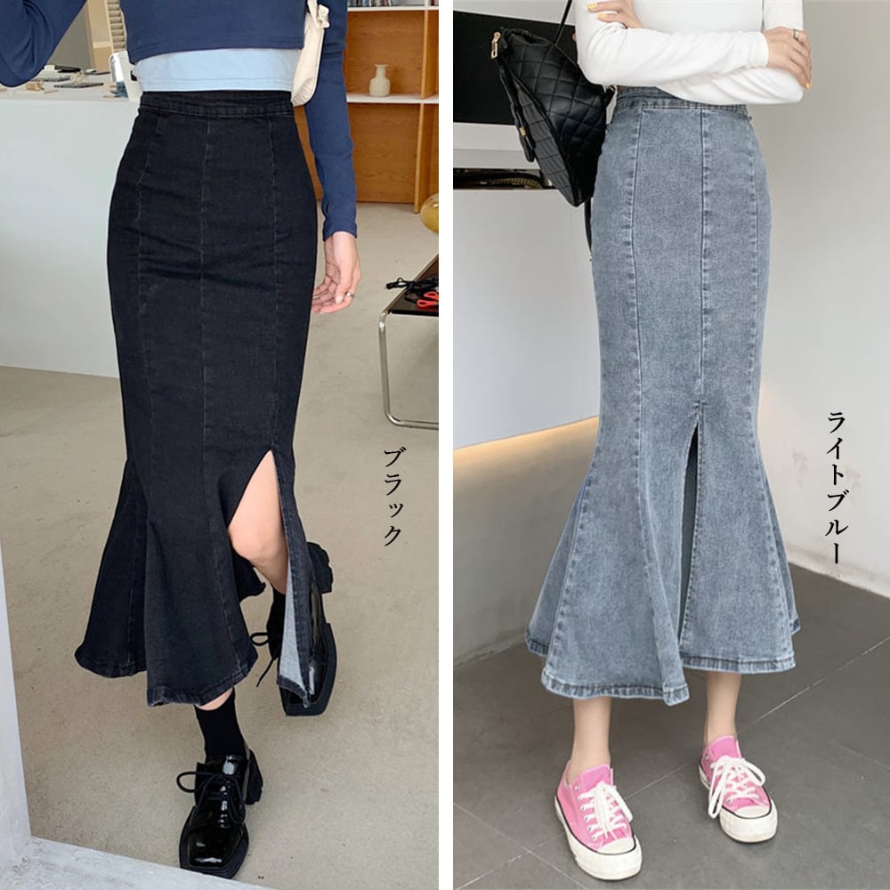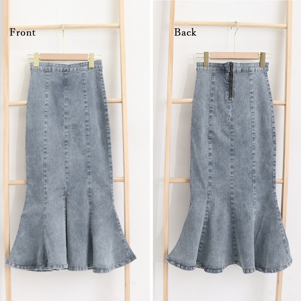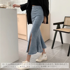 【即納】フロントスリット デニム マーメイドスカート 223709