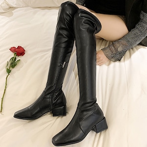 【即納】ニーハイ スクエアトゥ ブーツ 223821