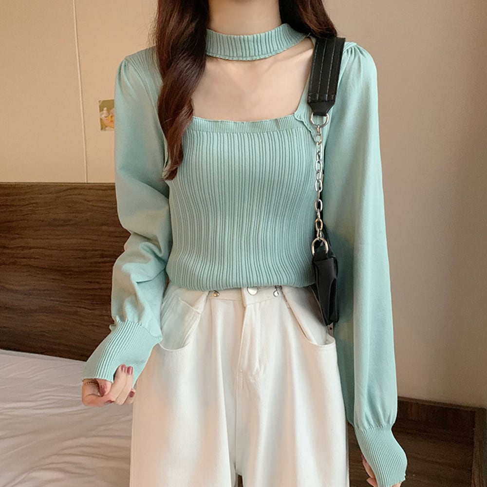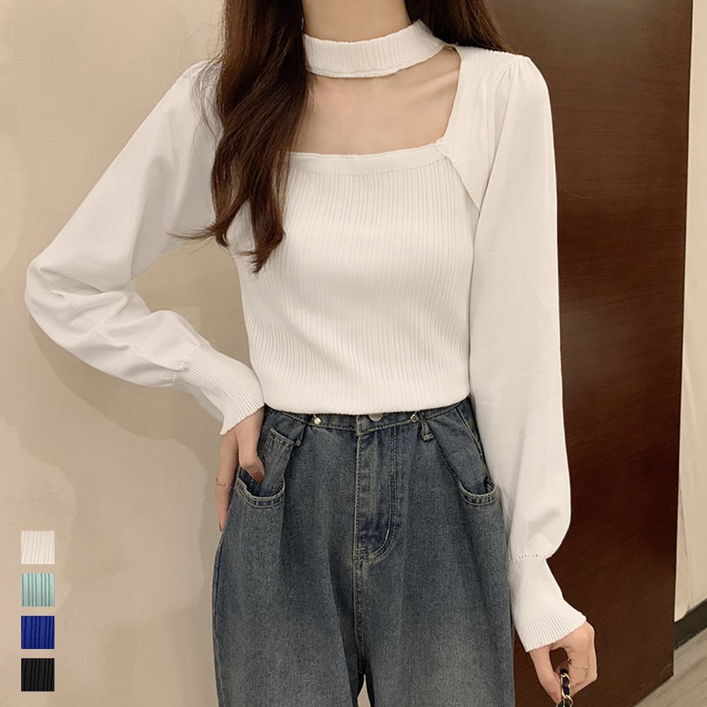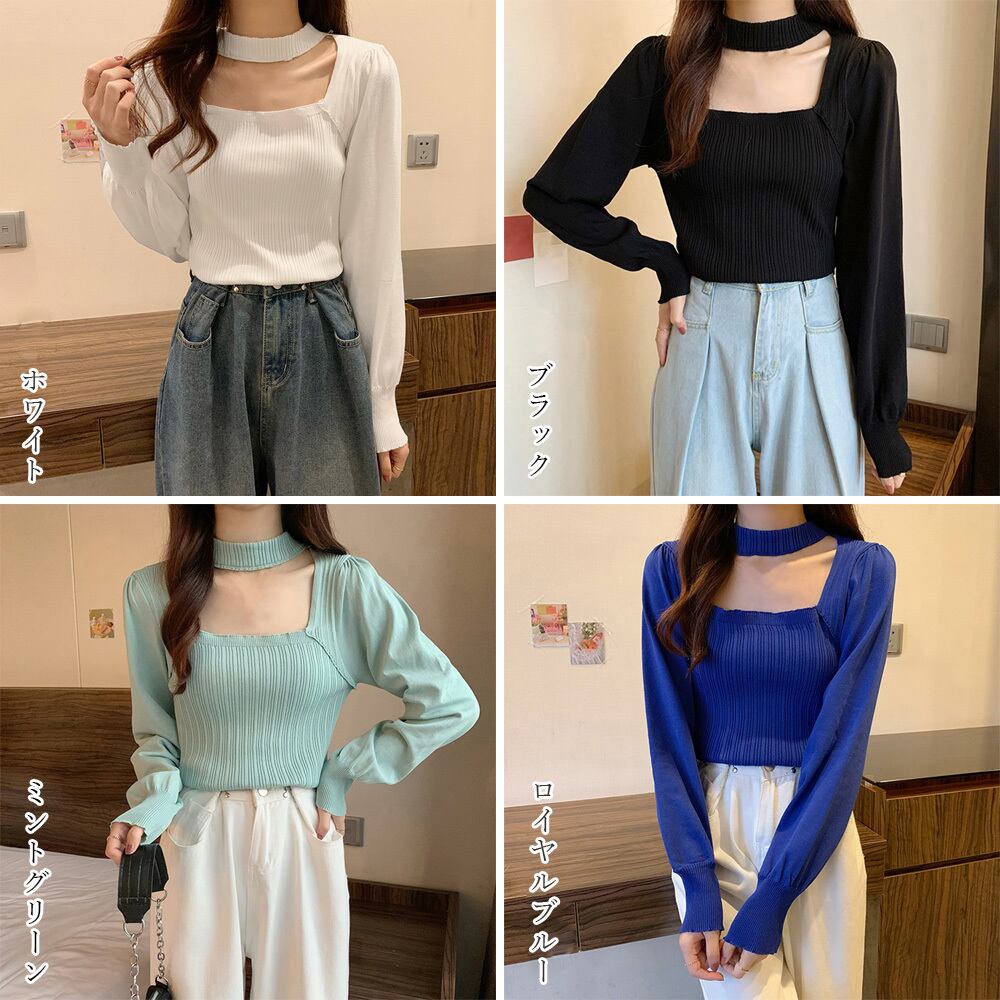 【即納】チョーカー リブニット 223956