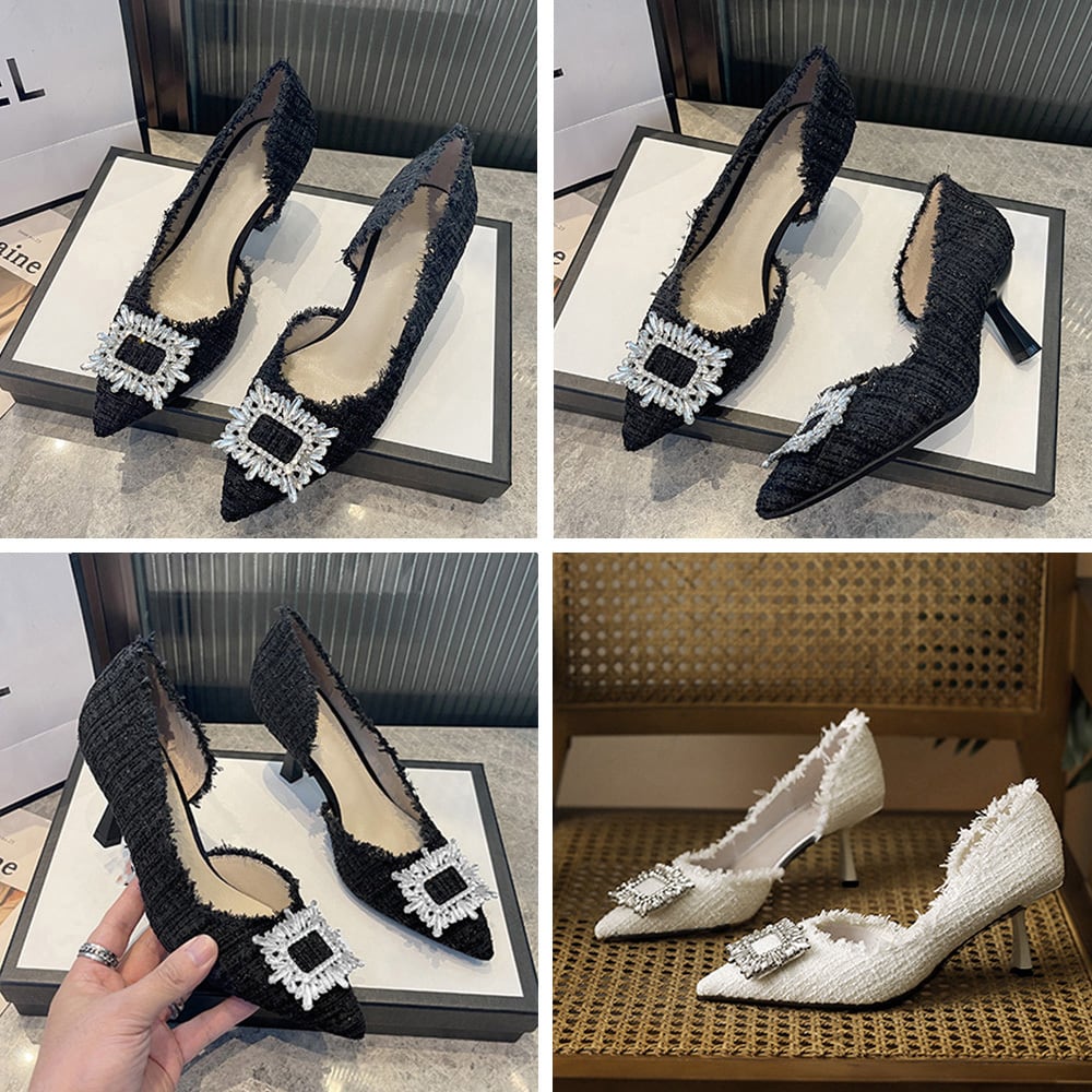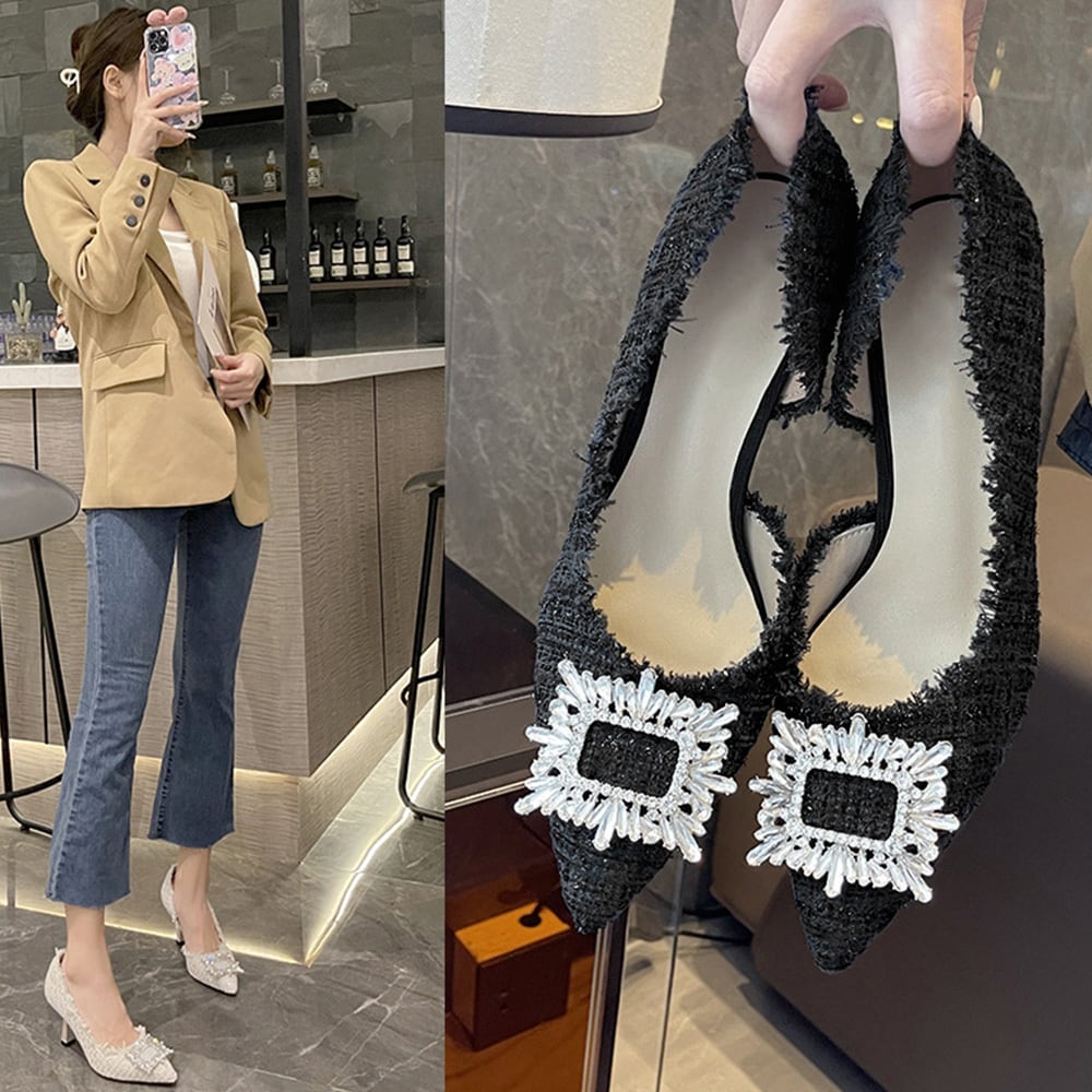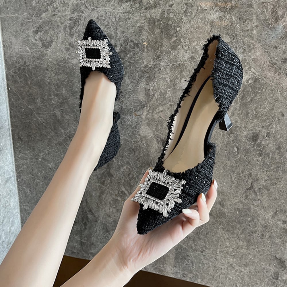 【即納】ツイード ポインテッドトゥ パンプス 224018