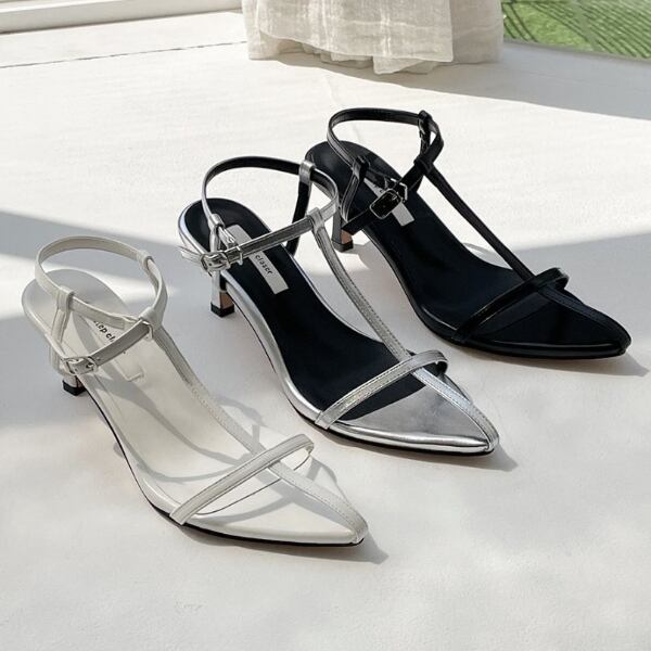 Tストラップ ポインテッドトゥ ピンヒール サンダル 225735