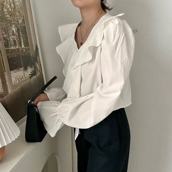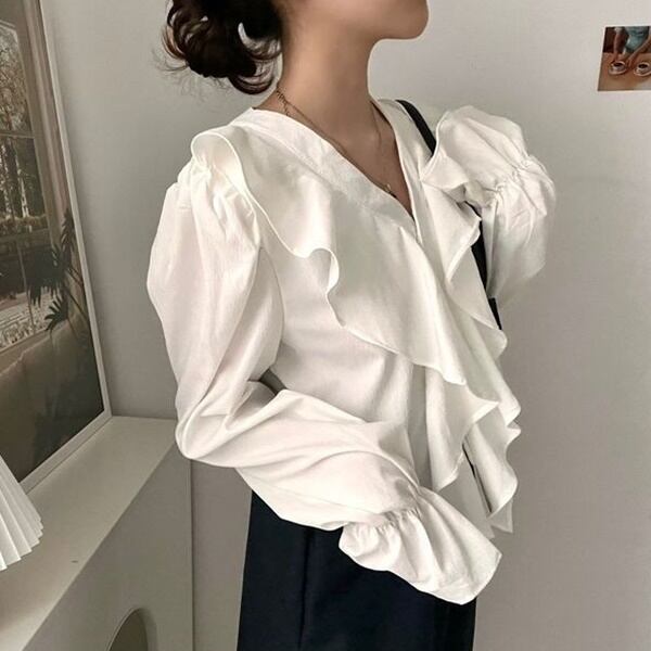 Vネック フリル ブラウス 226105