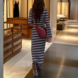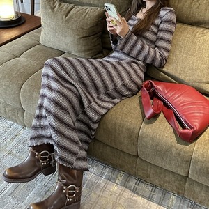ボーダー ラウンドネック ロング ニット ワンピース 226248
