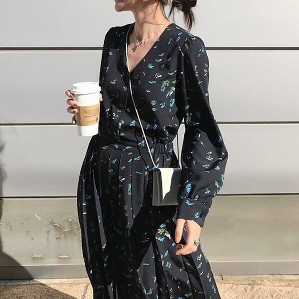 フラワー Vネック ロング ワンピース 226335