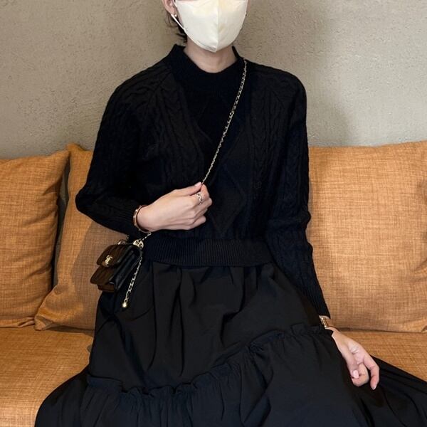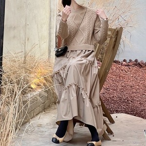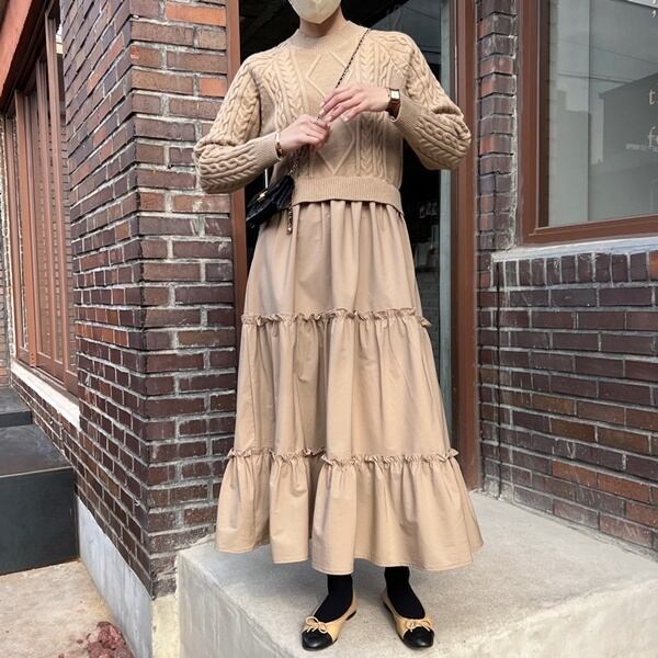 ケーブルニット ドッキング ティアード ワンピース 226607