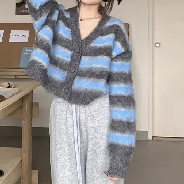 Vネック ボーダー ニット カーディガン 226595