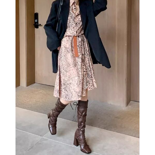 チャンキーヒール レースアップ ロングブーツ 226628