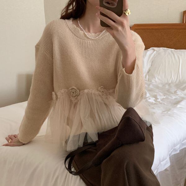 チュールドッキング フラワー ニット 226687