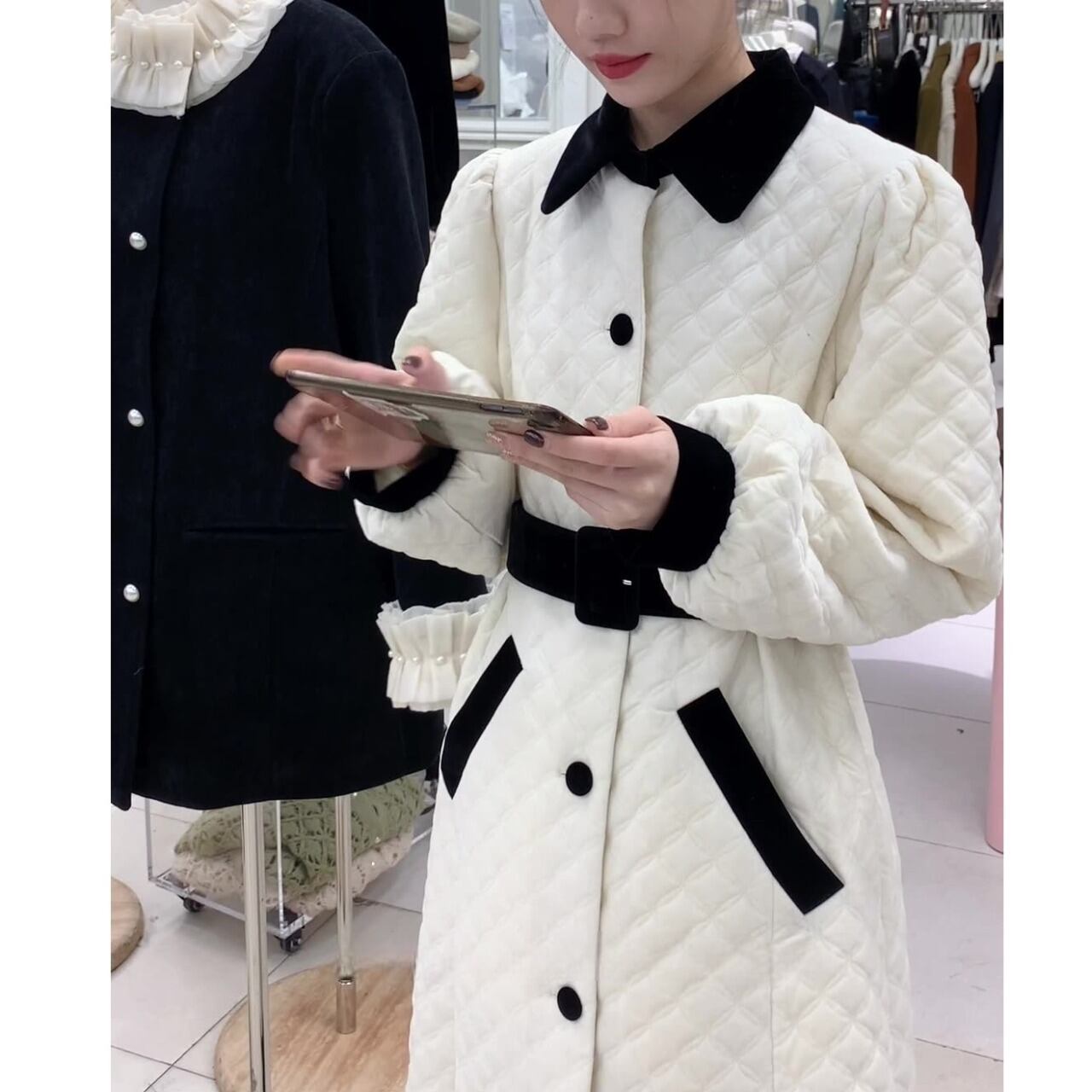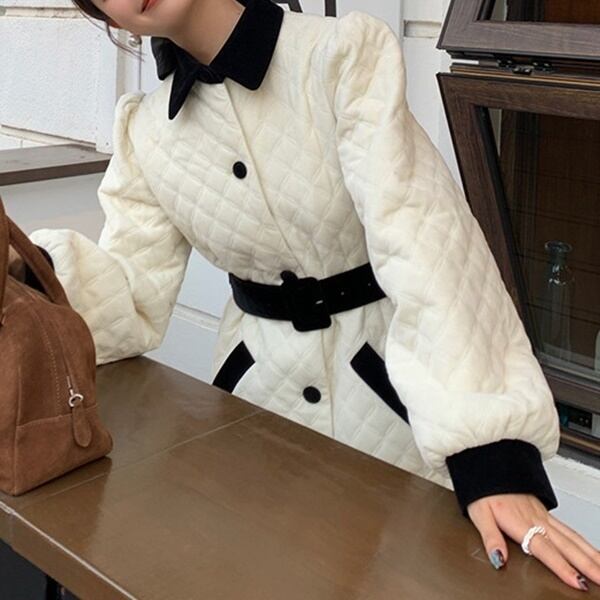 キルティング バイカラー コート 226857