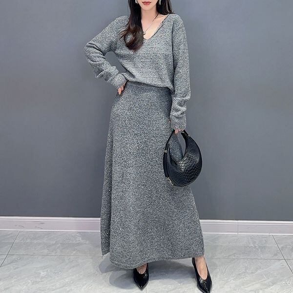 【Setup】ラメミックス Vネックニット&スカート 227071