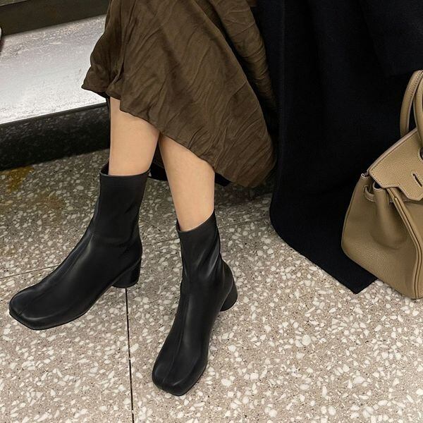 スクエアトゥ ラウンドヒール ショートブーツ 227086