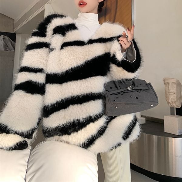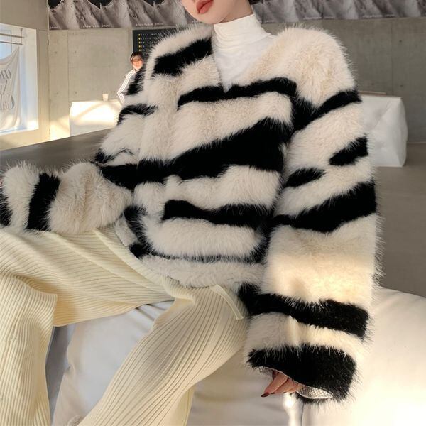 ゼブラ Vネック シャギー プルオーバー 227099