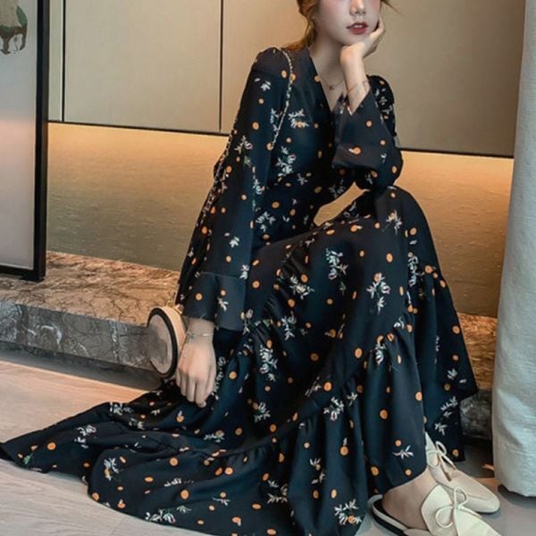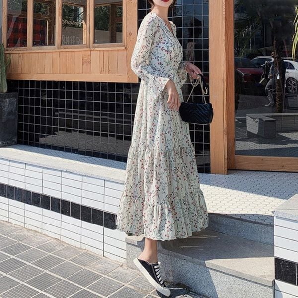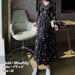 【即納】 フローラル ティアードワンピース 227347