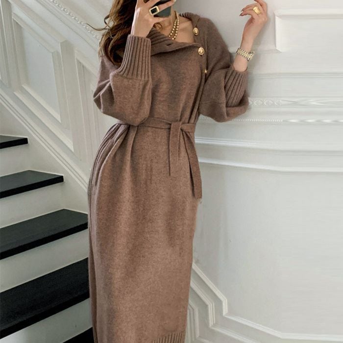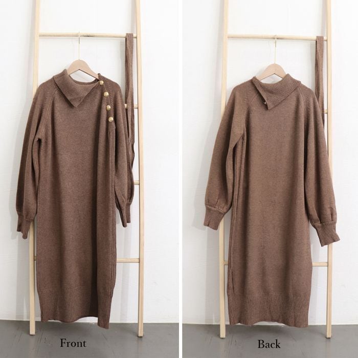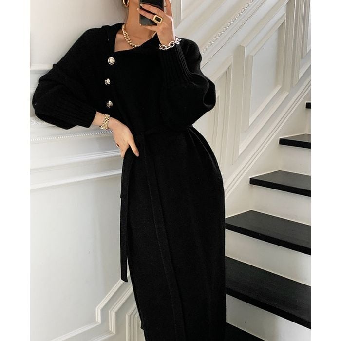 【即納】ウエストマーク ボタン ニットワンピース 227335